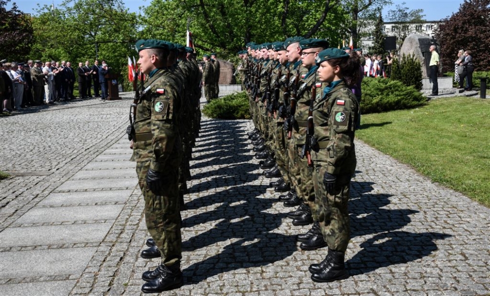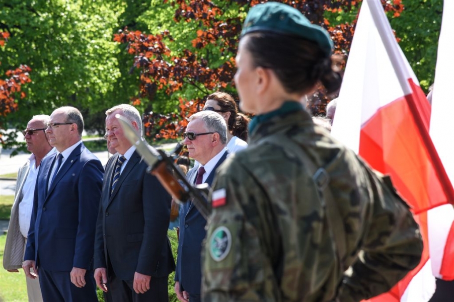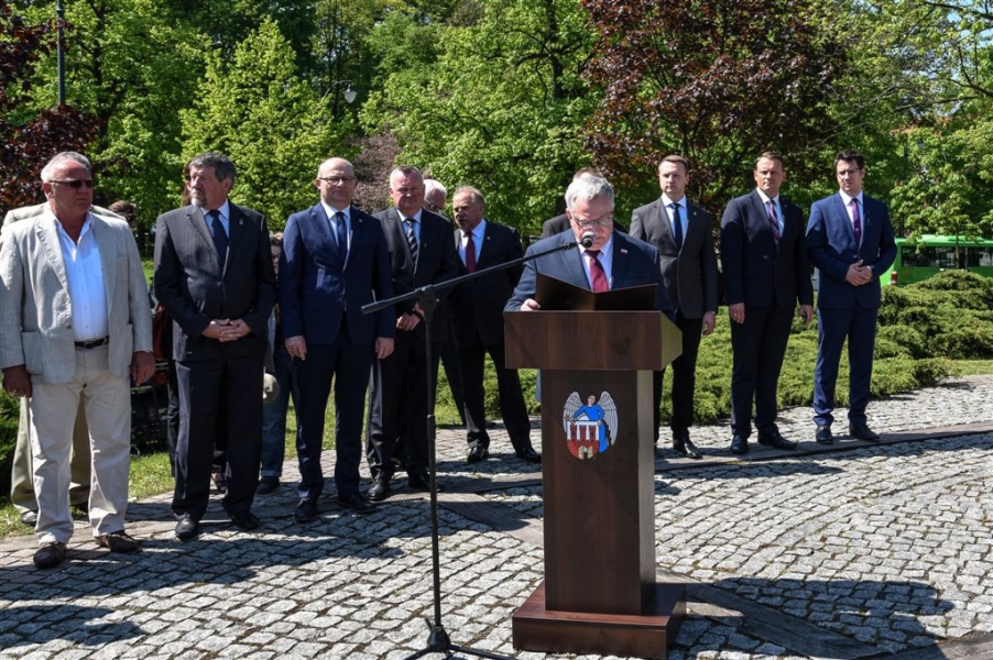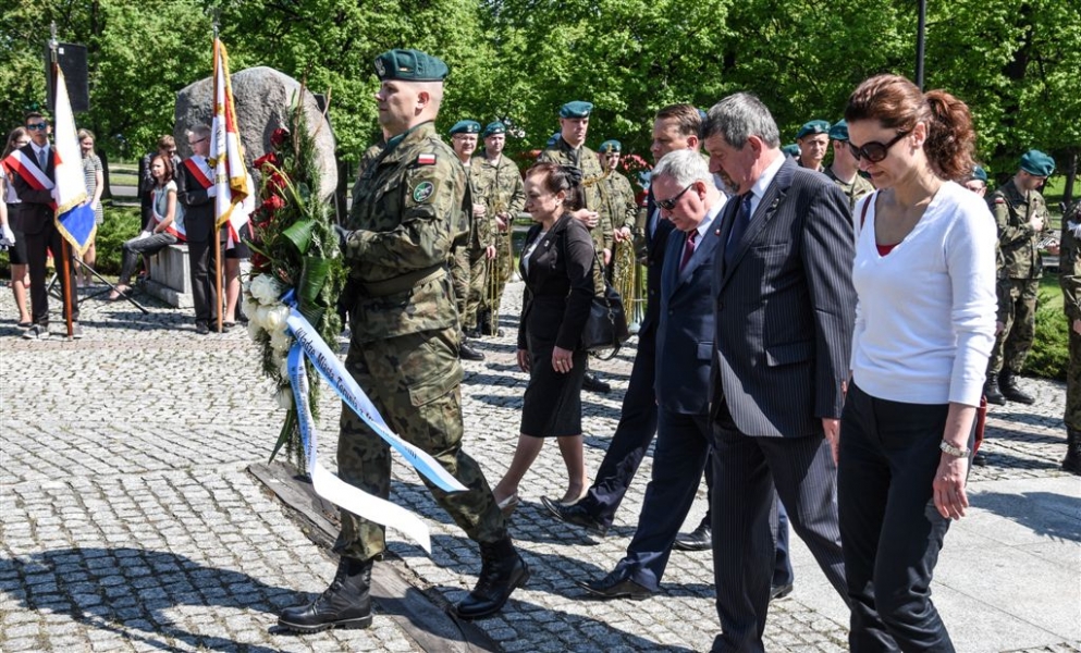 8 maja 2016 r. pod pomnikiem "Ku czci poległych i pomordowanych przez hitlerowskiego najeźdźcę w latach 1939-1945" w Toruniu odbyły się uroczystości z okazji 71. rocznicy zakończenia II wojny światowej. Fot. Lech Kamiński