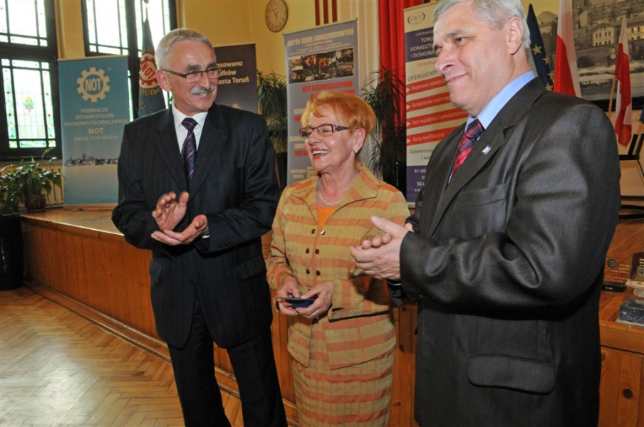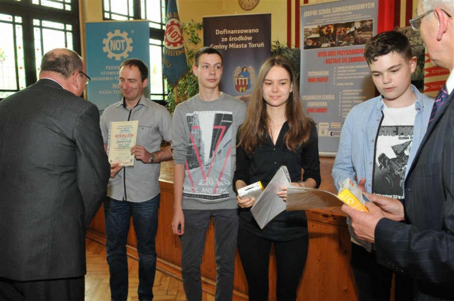 W auli Centrum Kształcenia Ustawicznego w Toruniu 11 maja 2016 r. odbyła się uroczystość z okazji inauguracji Dni Techniki i 55. rocznicy działalności Rady Toruńskiej Federacji Stowarzyszeń Naukowo-Technicznych NOT. Była to okazja do uhonorowania zasłużonych działaczy toruńskiego NOT i osób wspierających toruńskie środowisko naukowo-techniczne. Wręczono też nagrody w V edycji konkursu wiedzy technicznej dla uczniów szkół gimnazjalnych w Toruniu "Technika użytkowa w szkole i w domu". Fot. Małgorzata Litwin