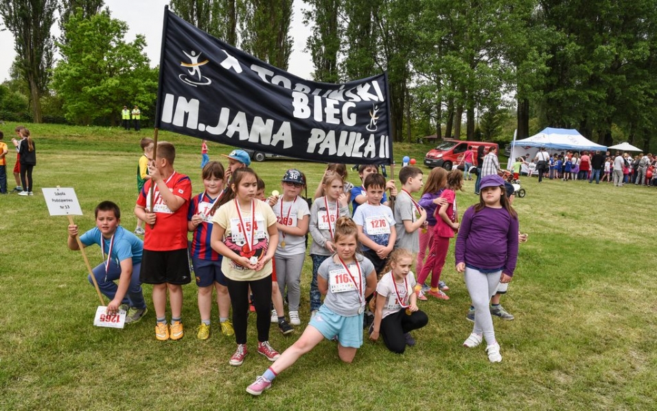 1,5 tysiąca najmłodszych torunian stanęło 20 maja 2016 r. na starcie jubileuszowego, X Toruńskiego Biegu im. Jana Pawła II. Impreza jest organizowana w Parku Miejskim przy Martwej Wiśle dla uczczenia postaci Ojca św. i rocznicy nadania imienia Jana Pawła II w Szkole Podstawowej Nr 13 w Toruniu. Fot. Lech Kamiński