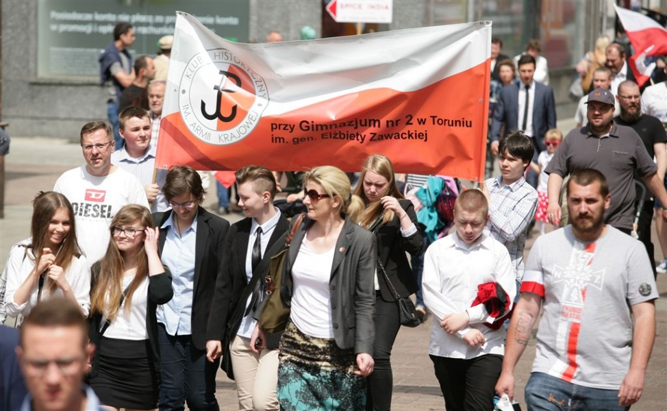 Przez Toruń przeszedł 21 maja 2016 r. VI Toruński Marsz Pułkownika Pileckiego. Wydarzenie odbyło się w ramach ogólnopolskich uroczystości ku czci "Żołnierzy Wyklętych" pod patronatem Prezydenta RP. Po mszy św. w kościele św. Katarzyny uczestnicy marszu przemaszerowali głównym deptakiem starówki pod Muzeum Etnograficzne, gdzie odbyła się uroczystość pod pomnikiem Pamięci Żołnierzy Wyklętych. Fot. Adam Zakrzewski