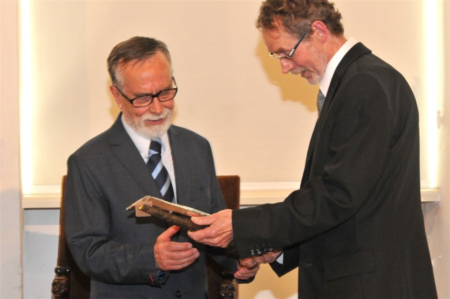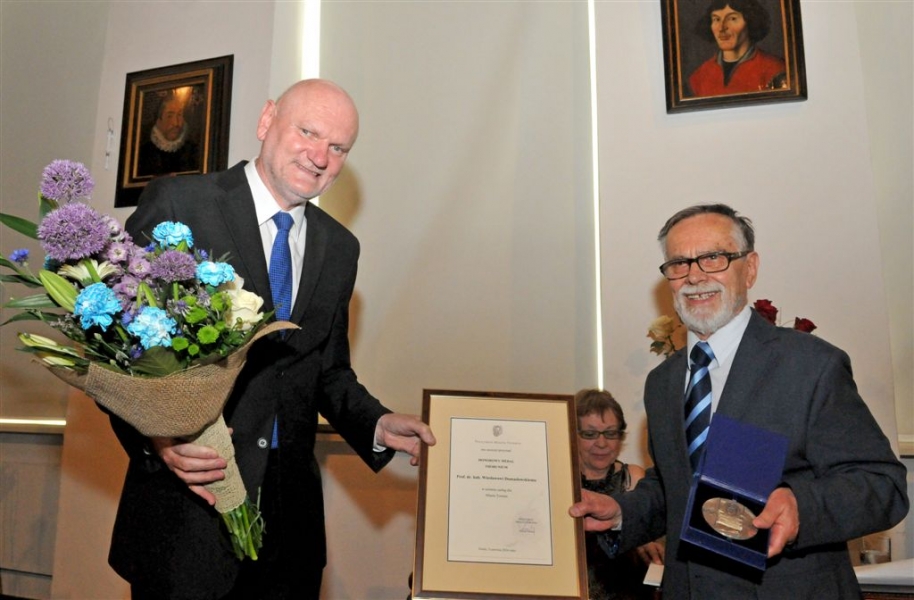 Jubileusz 90. urodzin świętował 3 czerwca 2016 r. wybitny toruński naukowiec i konserwator zabytków prof. Wiesław Domasłowski. Podczas uroczystości w Ratuszu Staromiejskim prezydent Torunia Michał Zaleski odznaczył go medalem Thorunium - najwyższym wyróżnieniem Prezydenta Miasta Torunia. Fot. Małgorzata Litwin