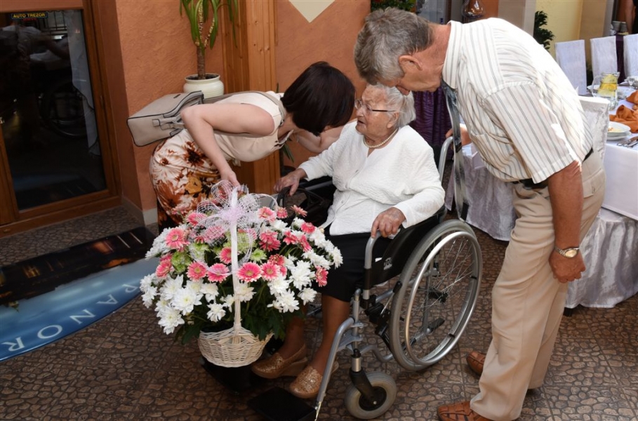 Setne urodziny obchodziła 8 czerwca 2016 roku pani Marta Ottlewska z Torunia. Z tej okazji życzenia złożył jej zastępca prezydenta Torunia Zbigniew Fiderewicz. Fot. Lech Kamiński