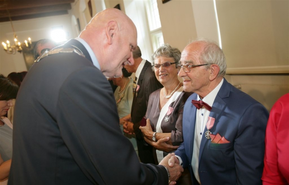 10 czerwca 2016 roku dwanaście par z Torunia otrzymało Medale za Długoletnie Pożycie Małżeńskie. Uroczystość odbyła się w Sali Mieszczańskiej Ratusza Staromiejskiego. Medale zostały nadane jubilatom przez prezydenta RP, natomiast małżonkom przekazał je prezydent Torunia Michał Zaleski. Fot. Adam Zakrzewski