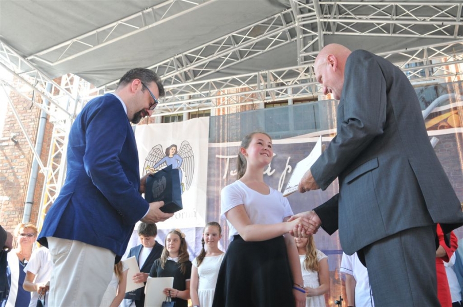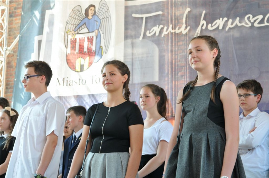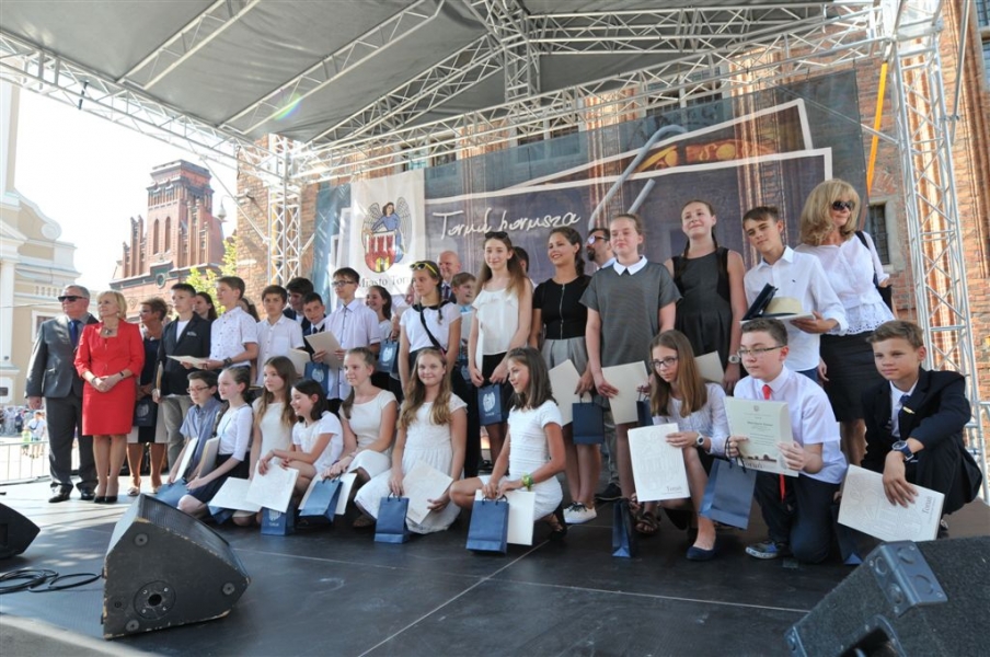 Tradycyjnie w dniu Święta Miasta, 24 czerwca 2016 r. prezedent wręczył na Rynku Staromiejskim świadectwa toruńskiej klasie, która wyróżniła się w nauce w minionym roku szkolnym. W tym roku jest to VIa ze Szkoły Podstawowej nr 24, która uzyskała najwyższy w Toruniu wynik ze sprawdzianu dla klas szóstych w roku 2016. Aż dwudziestu jej uczniów ma średnią ocen powyżej 5, a jedna osoba nawet 6. Odnoszą sukcesy sportowe, są laureatami konkursów, udzielają się społecznie. Wychowawcą klasy jest pani Anna Standish. Fot. Małgorzata Litwin