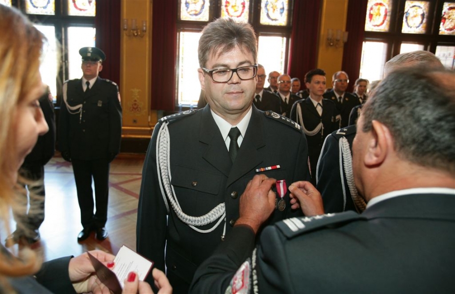 8 września 2016 r. w Toruniu odbyły się uroczystości z okazji Dnia Służby Celnej. Zasłużeni funkcjonariusze celni odebrali z rąk swoich przełożonych odznaczenia państwowe, akty awansu na wyższe stopnie służbowe oraz nagrody okolicznościowe. Gościem toruńskich obchodów był zastępca szefa Służby Celnej, podinspektor Jerzy Chrobak. Fot. Adam Zakrzewski