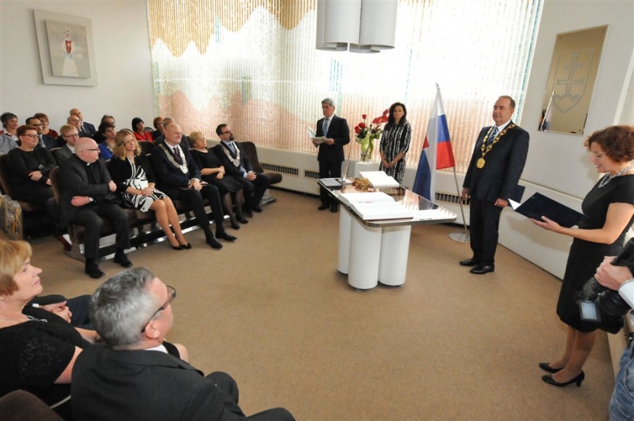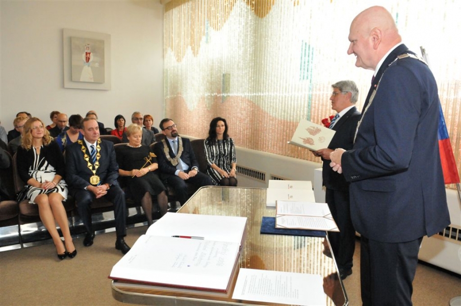 6-9 października 2016 r. delegacja Torunia gościła w słowackiej Czadcy na obchodach 20-lecia partnerstwa naszych miast. Z tej okazji prezydent Michał Zaleski został uhonorowany tytułem Honorowego Obywatela Czadcy. W miejscowej galerii została otwarta wystawa akwareli toruńskiego artysty Adama Papke oraz koncert obchodzacej w tym roku 25-lecie Multicameraty. Fot. Małgorzata Litwin