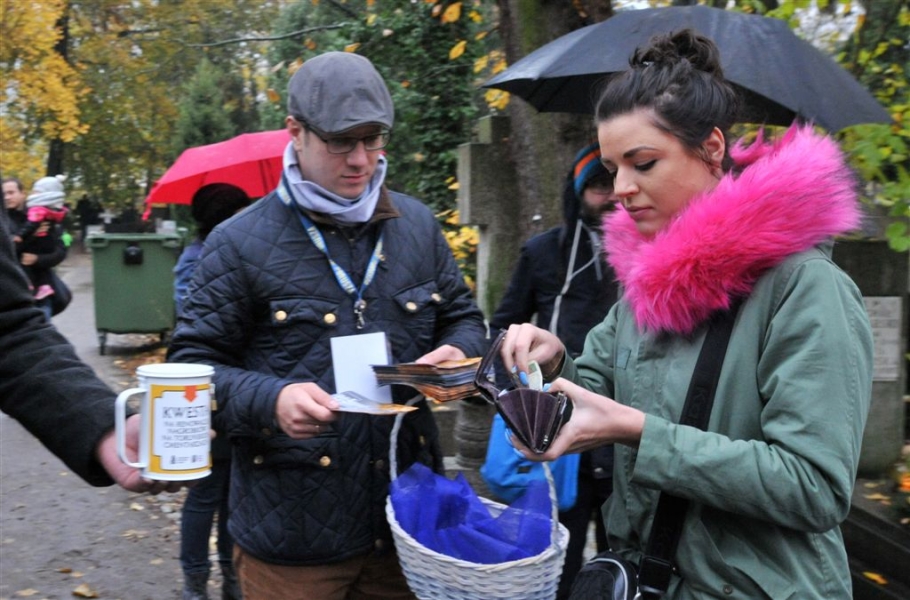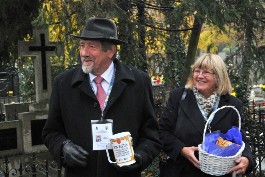 Ponad 13 tys. zł przekazali torunianie i goście miasta na renowację zabytkowych nagrobków podczas kwesty na cmentarzu św. Jerzego. Akcja odbyła się 1 listopada, a jej celem jest w tym roku odnowienie kwatery rodzinnej toruńskich rzemieslników i przedsiębiorców Araczewskich. Fot. Małgorzata Litwin
