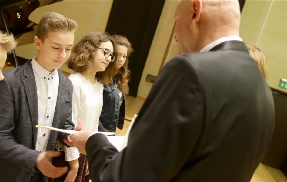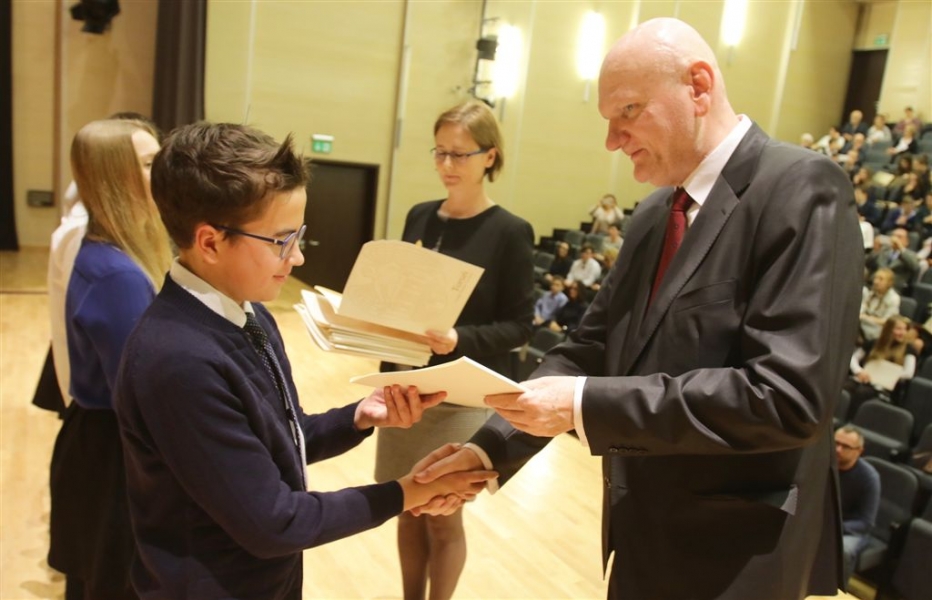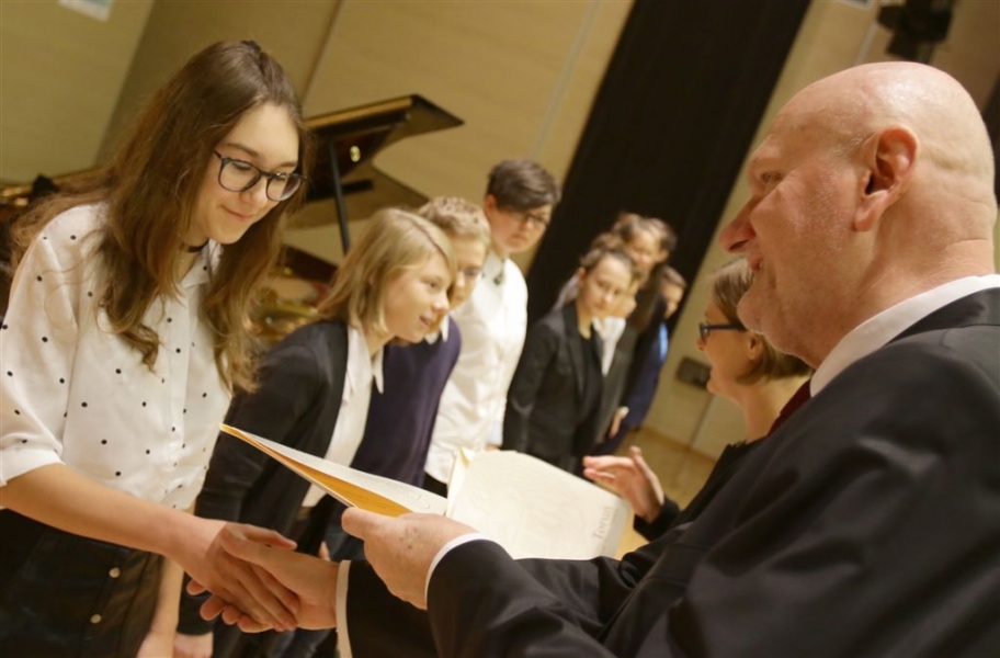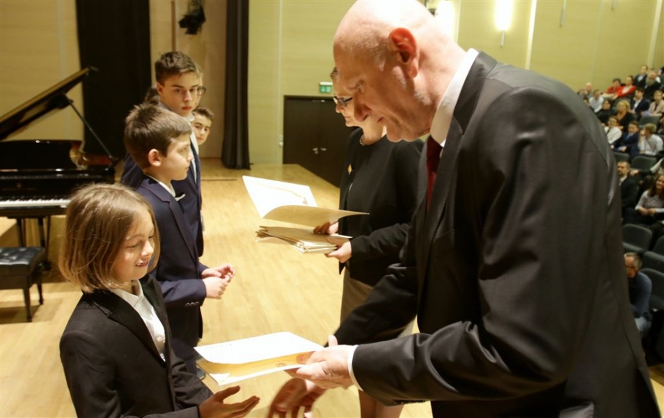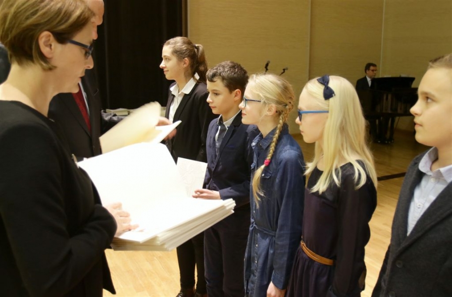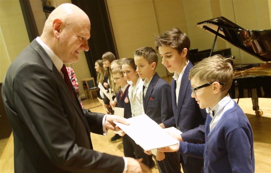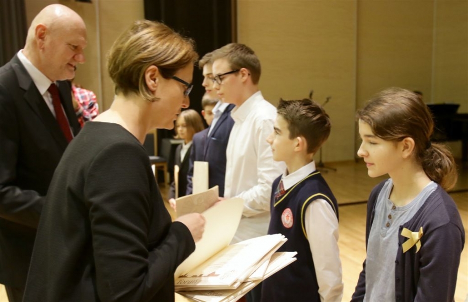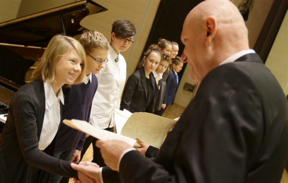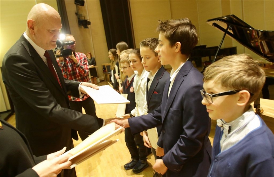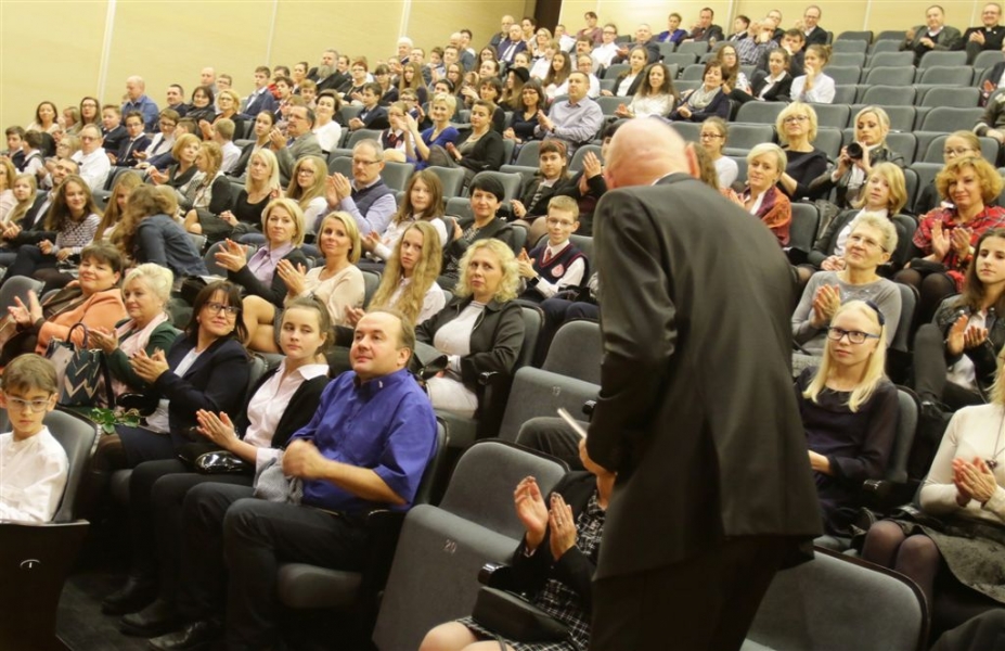 176 uzdolnionych toruńskich uczniów będzie otrzymywać stypendia w roku szkolnym 2016/2017. Wręczenie aktów ich nadania przez prezydenta Torunia Michała Zaleskiego odbyło się 17 listopada 2016 r. w sali koncertowej Zespołu Szkół Muzycznych. Fot. Adam Zakrzewski