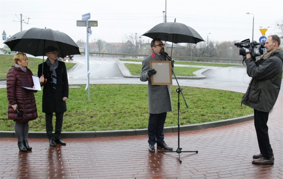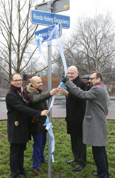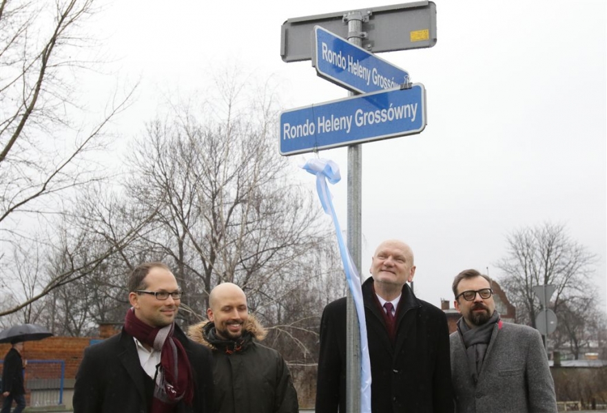 Skrzyżowanie ulic Łokietka, Kościuszki i Chrobrego, w sąsiedztwie Młynów Toruńskich nosi od 10 grudnia 2016 r. nazwę Ronda Heleny Grossówny. Wniosek w sprawie nazwania ronda imieniem sławnej aktorki złożył Krzysztof Trojanowski - mieszkaniec Torunia, a jednocześnie filmoznawca i badacz biografii Heleny Grossówny. Towarzystwo Miłośników Torunia zaopiniowało pozytywnie jego propozycję. Fot. Adam Zakrzewski