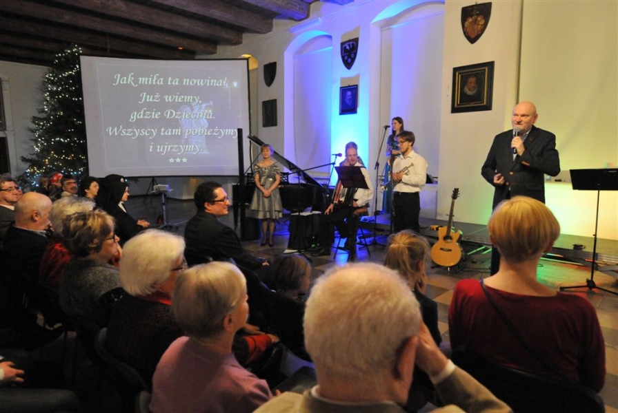 Przy wypełnionej po brzegi Sali Mieszczańskiej Ratusza Staromiejskiego odbył się 26 grudnia 2016 r. XIV Toruński Wieczór Kolęd. Torunianie i ich goście mieli okazję pośpiewac wspólnie z zespołem Claritas i żeńskim zespołem Kameralnym "Portamus Gaudium". Spotkanie poprowadził ks. dr hab. Piotr Roszak. Fot. Małgorzata Litwin