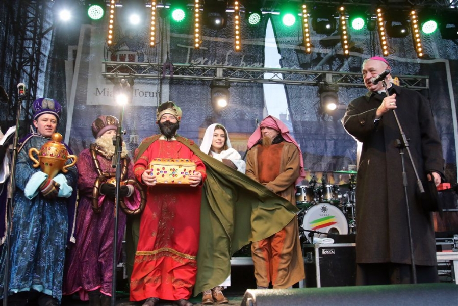 6 stycznia 2017 r. ulicami toruńskiej starówki przeszedł barwny Orszak Trzech Króli. Po powitaniu przez prezydenta Torunia Michała Zaleskiego i Biskupa Toruńskiego Andrzeja Suskiego pochód wyruszył z Rynku Staromiejskiego na Rynek Nowomiejski, gdzie odbyła się inscenizacja jasełek, przedstawienie „Wigilia u Świętego Mikołaja” i koncert Kamila Bednarka z zespołem. Fot. Adam Zakrzewski