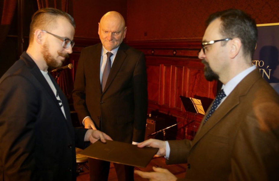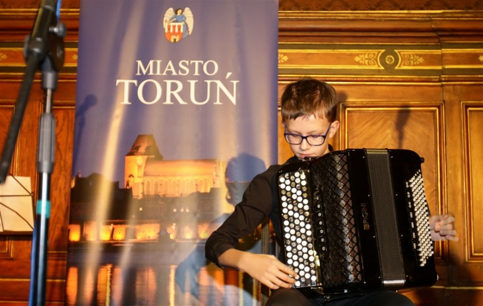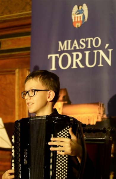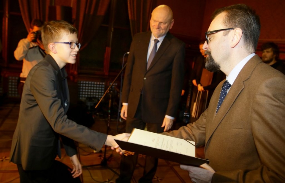 Trzynaście młodych osób zajmujących się działalnością artystyczną, twórców i animatorów kultury otrzymało Stypendia Miasta Torunia w dziedzinie kultury na rok 2017. Wręczenie aktów przyznania stypendiów odbyło się 9 stycznia w Dworze Artusa. Uroczystość uświetnili swoimi występami zespół Half Light oraz najmłodszy tegoroczny stypendysta, Dawid Deja. Fot. Adam Zakrzewski