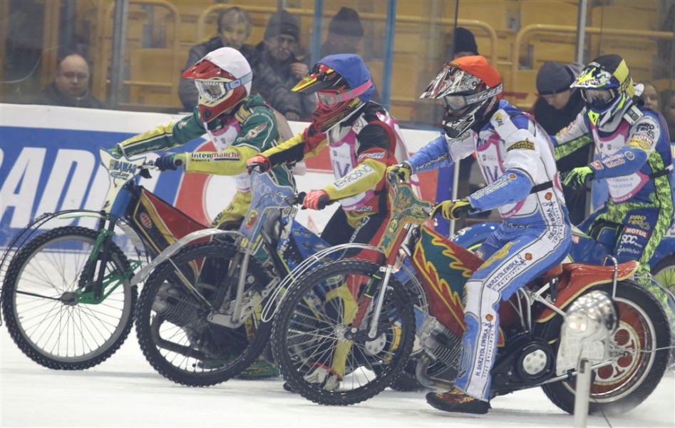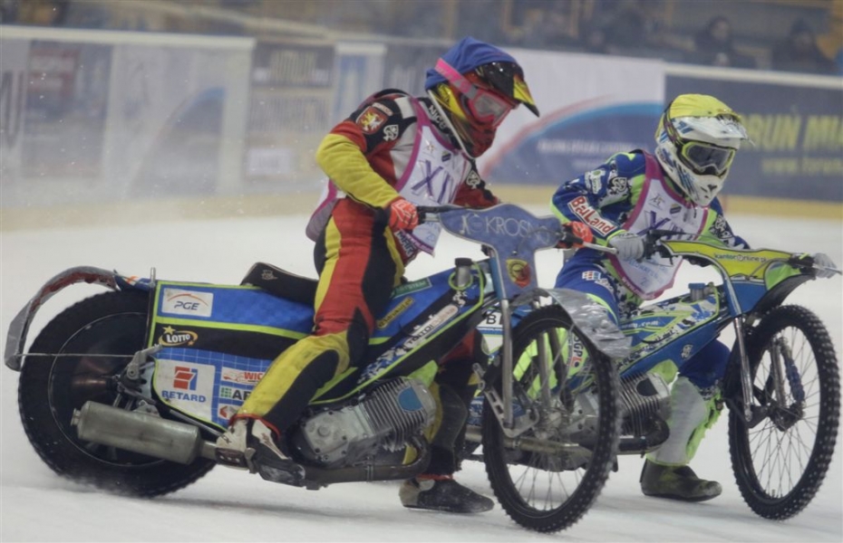 Po zaciętej i pełnej upadków walce XIV Mistrzostwa Torunia w Żużlu na Lodzie wygrał Hubert Łęgowik wychowanek częstochowskiego Włókniarza. Drugie miejsce na podium zajął Adrian Balk, a trzecie Mateusz Kowalczyk. Impreza odbyła się 29 stycznia 2017 r. na Tor-Torze. Fot. Adam Zakrzewski