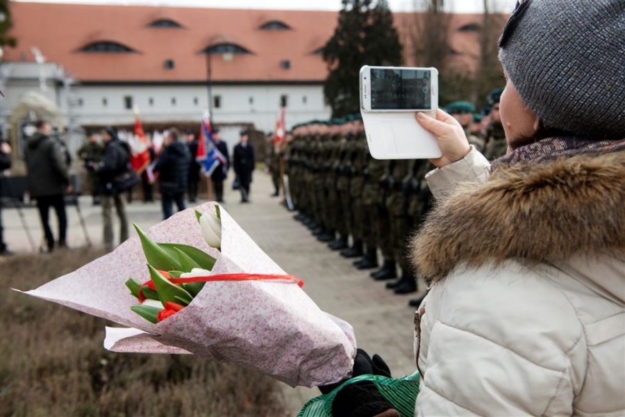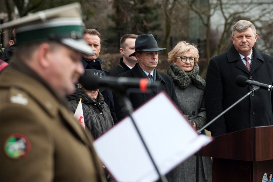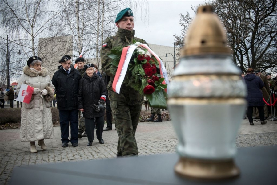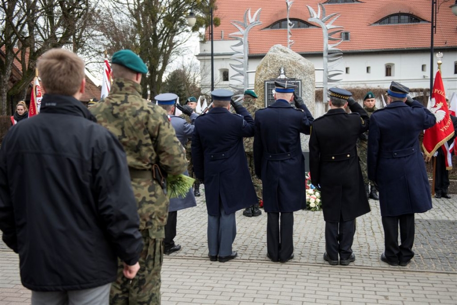 Pod pomnikiem w alei Solidarności odbyła się 1 marca 2017 r. uroczystość wojskowa z okazji Narodowego Dnia Pamięci Żołnierzy Wyklętych - kulminacyjny moment tegorocznych obchodów zorganizowanych w Toruniu dla upamiętnienia działaczy podziemia antykomunistycznego 1944-1963. Fot. Wojtek Szabelski
