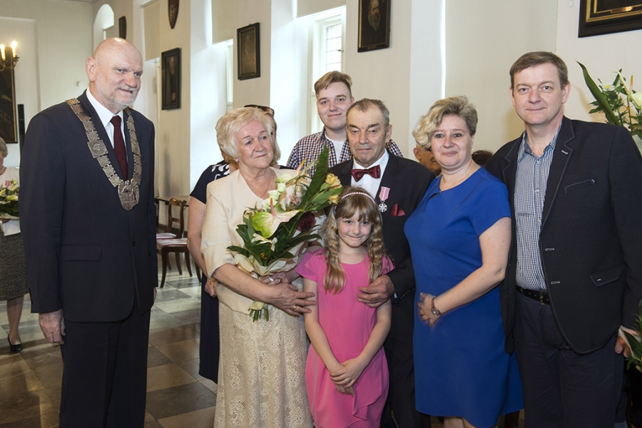 W Ratuszu Staromiejskim w Toruniu dwanaście par małżeńskich świętowało 31 marca 2017 r. jubileusz co najmniej 50 lat wspólnego życia. Z tej okazji prezydent Torunia Michał Zaleski wręczył im Medale za Długoletnie Pożycie Małżeńskie. Fot. Wojtek Szabelski