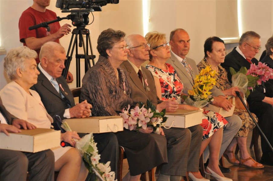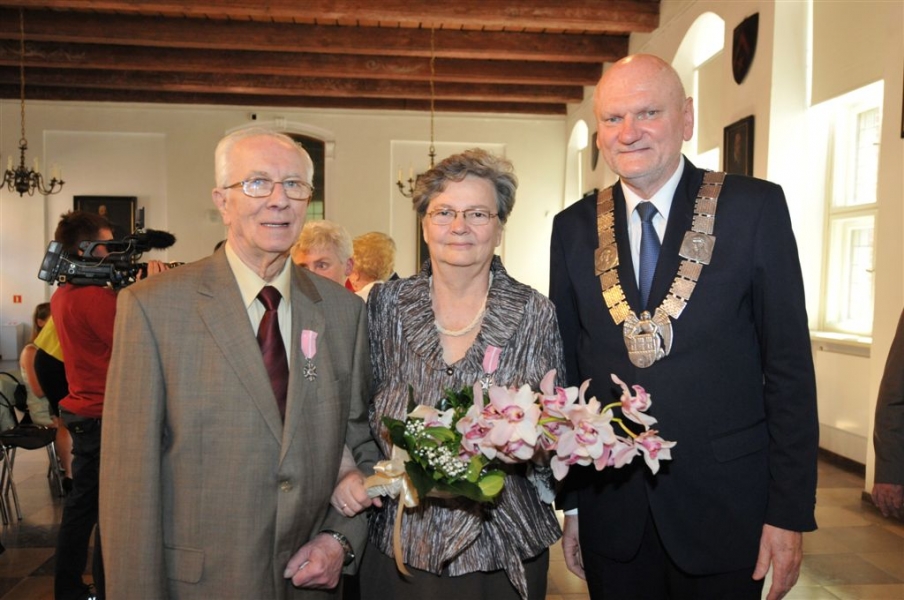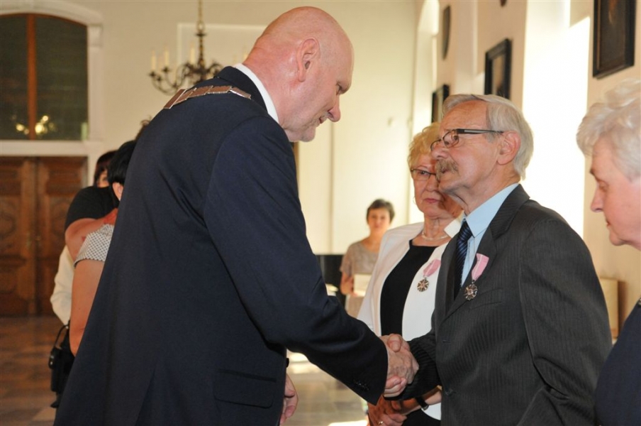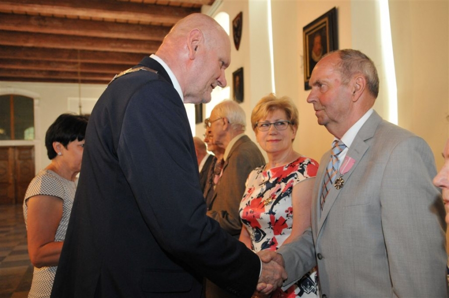9 toruńskich par z co najmniej 50-letnim stażem otrzymało 19 maja 2017 r. Medale za Długoletnie Pozycie Małzeńskie. Odznaczenia nadał im Prezydent Rzeczypospolitej Polskiej, a wręczył w toruńskim Ratuszu Staromiejskim prezydent Torunia Michał Zaleski. Fot. Małgorzata Litwin