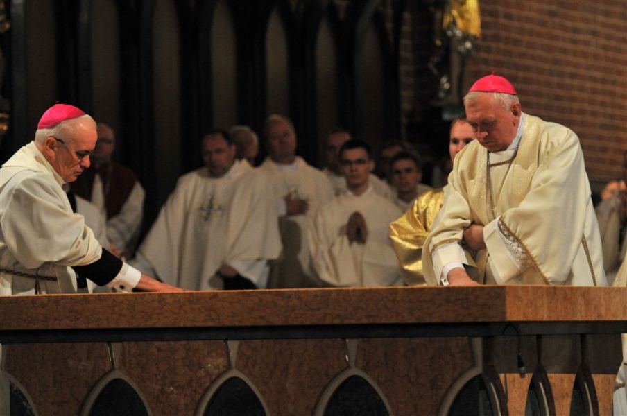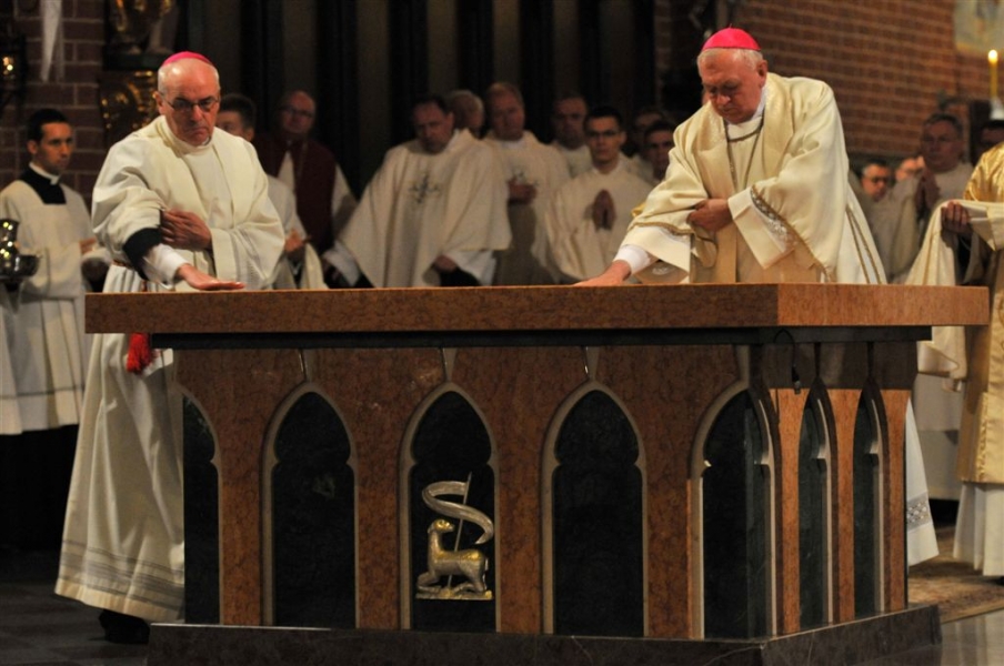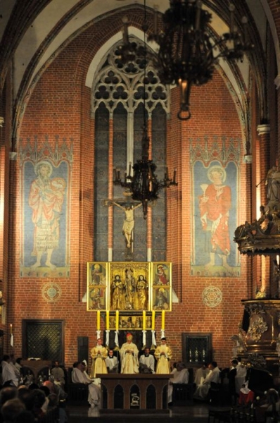 Toruńska katedra śś. Janów ma nowy ołtarz główny. Uroczystość jego konsekracji odbyła się 5 października 2015 r. Projektantem ołtarza jest prof. Jan Tajchman, dzieło wykonała firma z Gorzowa Wielkopolskiego, a ufundował ks. biskup Andrzej Suski, świętujący w tym roku 29. rocznicę sakry biskupiej. Tego dnia w katedrze odbyła się również prezentacja „Tryptyku Rzymskiego” Jana Pawła II w interpretacji aktora Dariusza Bereskiego oraz do śpiewu i muzyki w wykonaniu Mikołaja Hajduczeni. Fot. Małgorzata Litwin