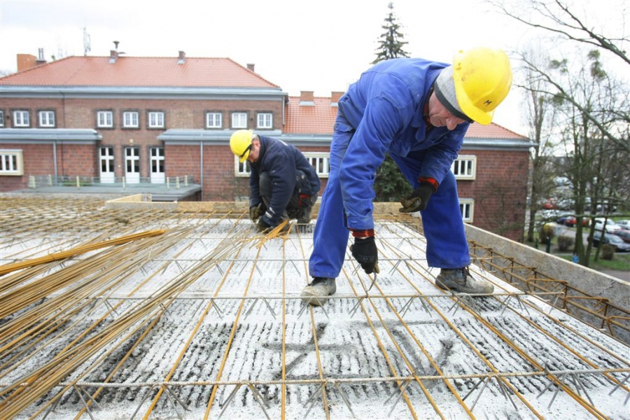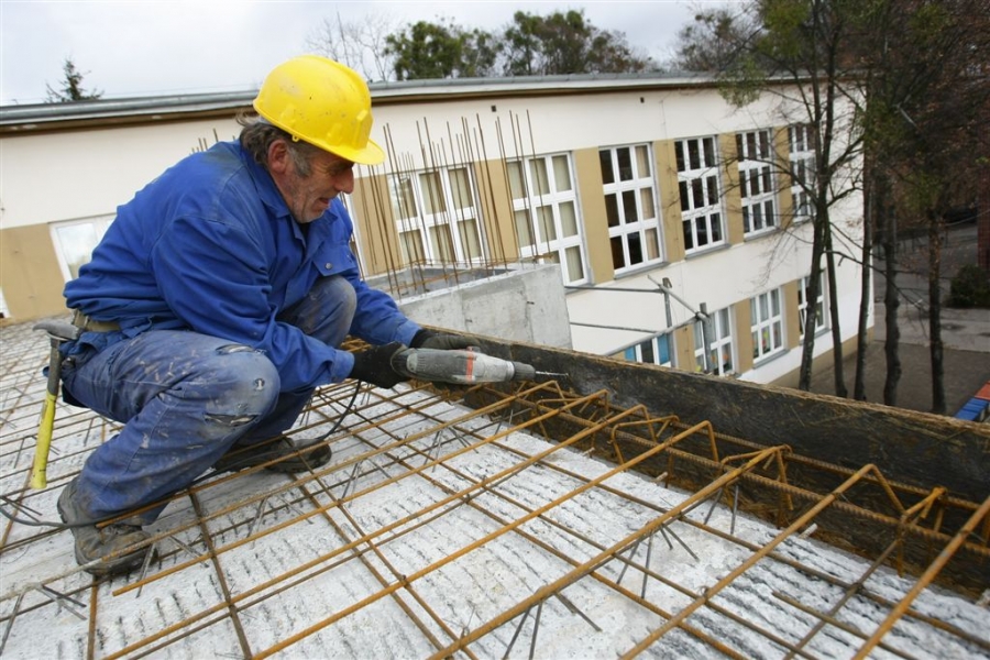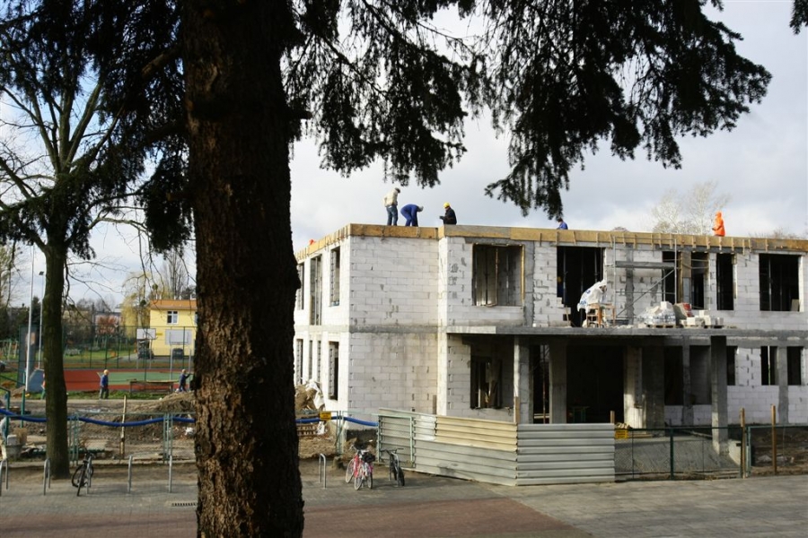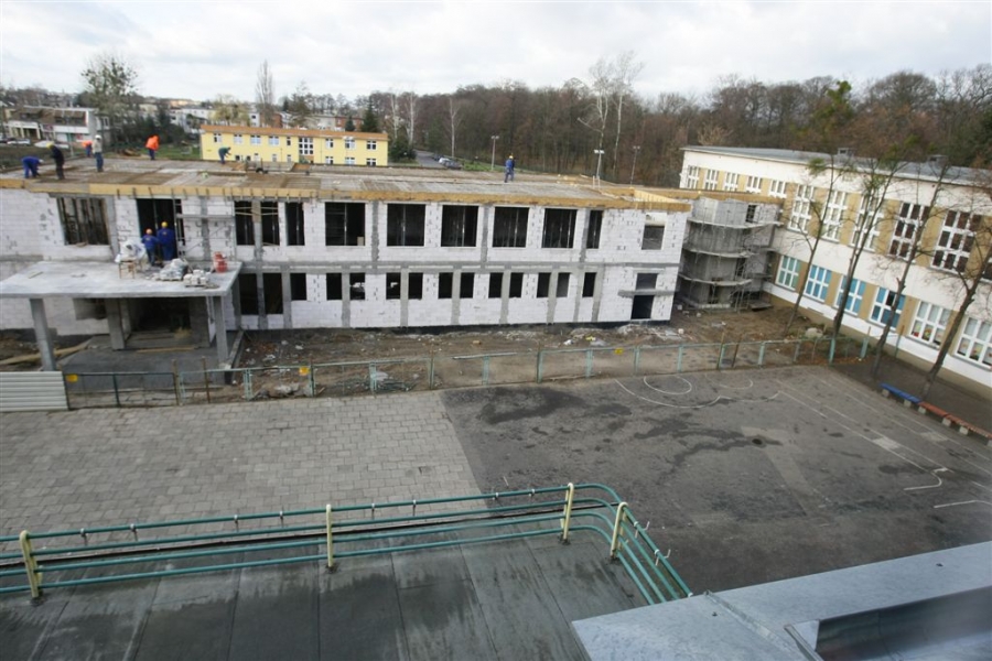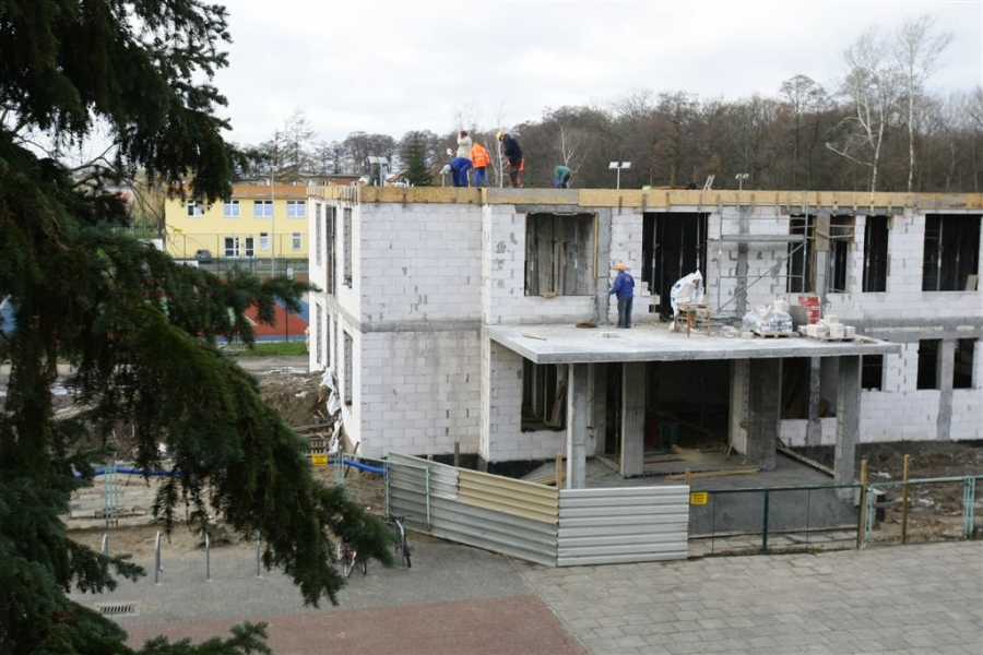 Przed zimą budowlańcy zakończyli stawianie murów i stropów nowego segmentu dydaktycznego Zespołu Szkół nr 14 w Toruniu. Szkoła powiększy się o siedem klas, wielofunkcyjną aulę, pokój nauczycielski i szatnię. Nowy segment będzie połączony z istniejącym budynkiem łącznikiem wraz z windą zewnętrzną na poziomie dwóch kondygnacji. Wykonawcą prac za 2,85 mln zł brutto jest Przedsiębiorstwo Budowlane M&K Kopczyński. Zdjęcia z listopada 2015 r. Fot. Adam Zakrzewski