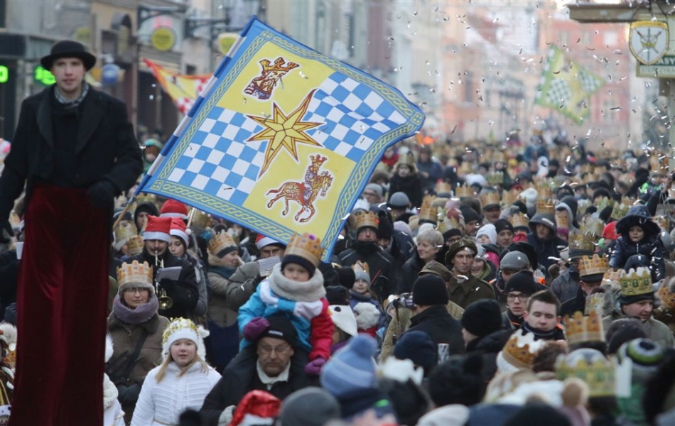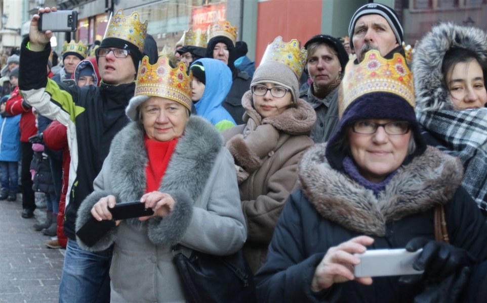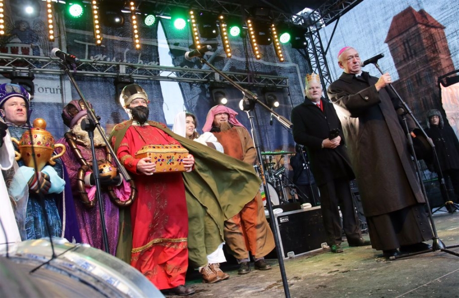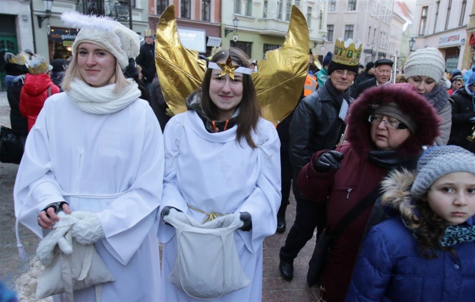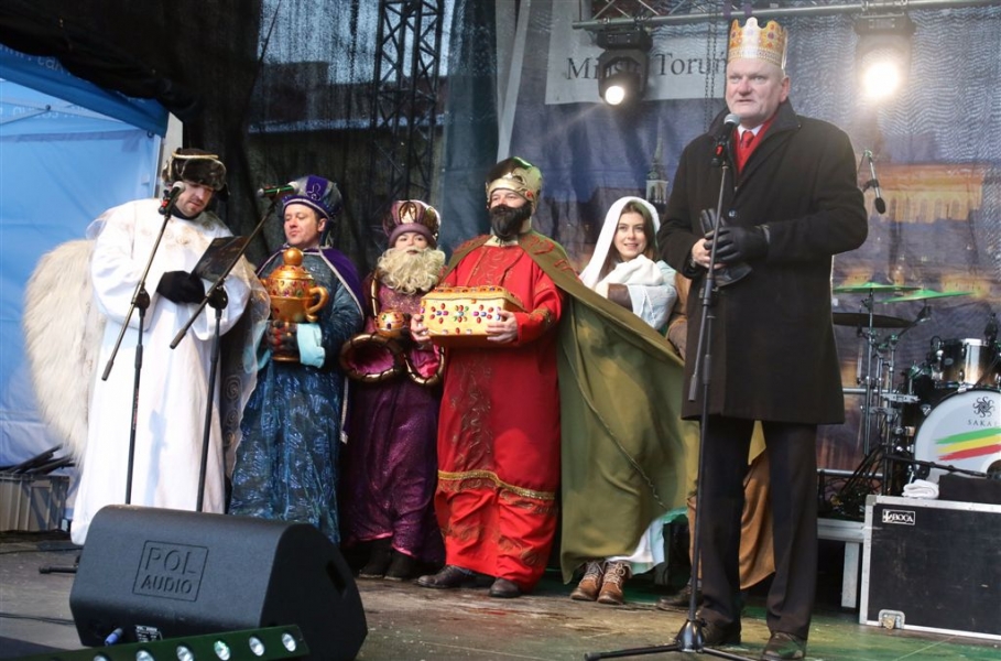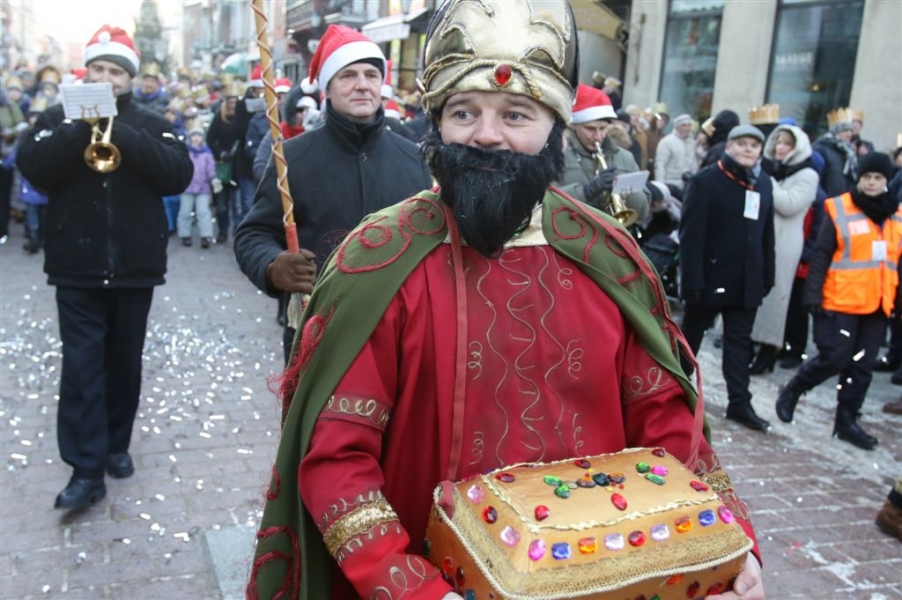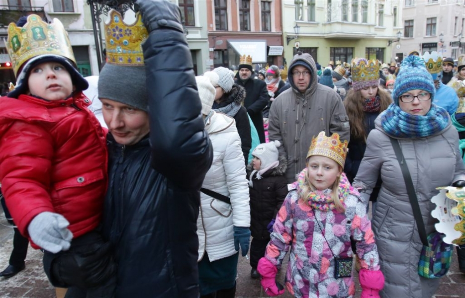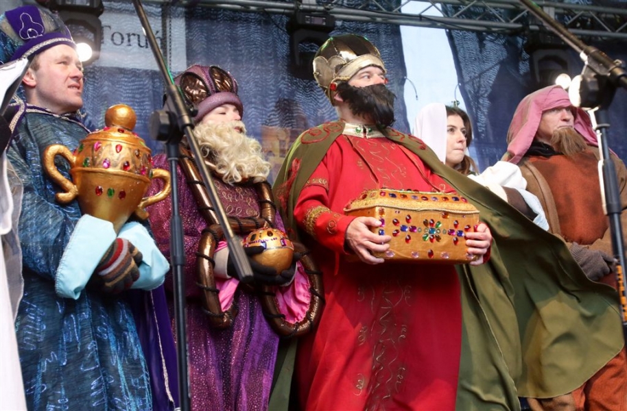 6 stycznia 2017 r. ulicami toruńskiej starówki przeszedł  barwny Orszak Trzech Króli. Po powitaniu przez prezydenta Torunia Michała Zaleskiego i Biskupa Toruńskiego Andrzeja Suskiego pochód wyruszył z Rynku Staromiejskiego na Rynek Nowomiejski, gdzie odbyła się inscenizacja jasełek, przedstawienie „Wigilia u Świętego Mikołaja” i koncert Kamila Bednarka z zespołem. Fot. Adam Zakrzewski