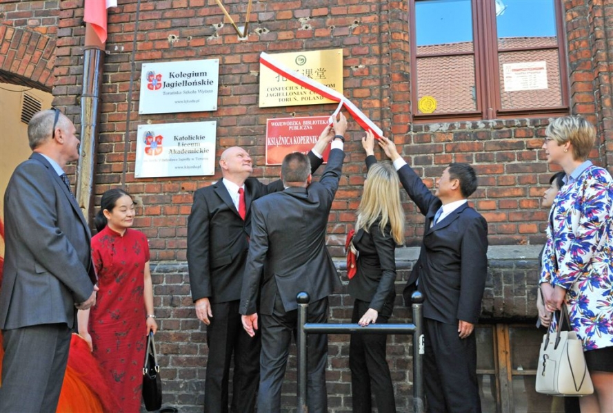 W obecności wielu gości z Chin 24 maja 2016 r. w Toruniu został otwarty Confucius Classroom - ośrodek promocji kultury i języka chińskiego. Placówka powstała z inicjatywy Kolegium Jagiellońskiego, na mocy umowy zawartej pomiędzy toruńską uczelnią a centralą Instytutu Konfucjańskiego w Pekinie (HANBAN). Mieści się na ostatnim piętrze budynku uczelni przy ul. Jęczmiennej. Opiekę merytoryczną nad toruńskim ośrodkiem zadeklarował Uniwersytet Hubei w Wuhan. Fot. Małgorzata Litwin