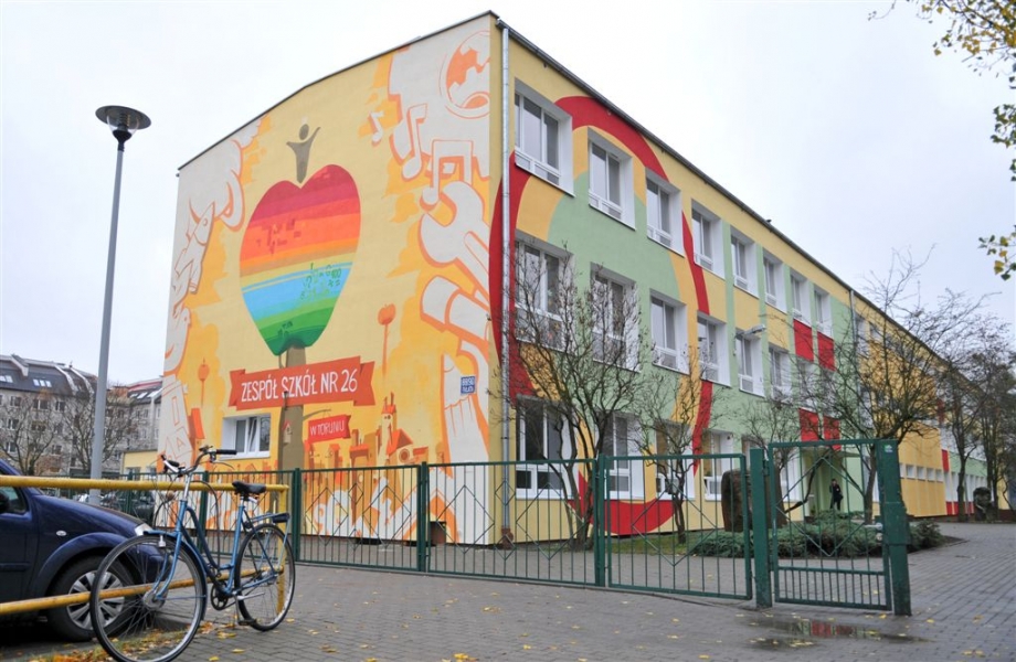 Przy ul. Fałata 88/90 w Toruniu 17 listopada 2015 r. odbyło się oficjalne otwarcie nowej siedziby Zespołu Szkół nr 26 w Toruniu im. ks. prof. Józefa Tischnera. Miasto przeprowadziło kompleksowy remont i przebudowę istniejącego budynku szkolnego wraz z dostosowaniem go dla osób niepełnosprawnych. Wykonawcą robót budowlanych była firma Rembud z Grudziądza, a ich koszt wyniósł 2,9 mln zł. Fot. Małgorzata Litwin