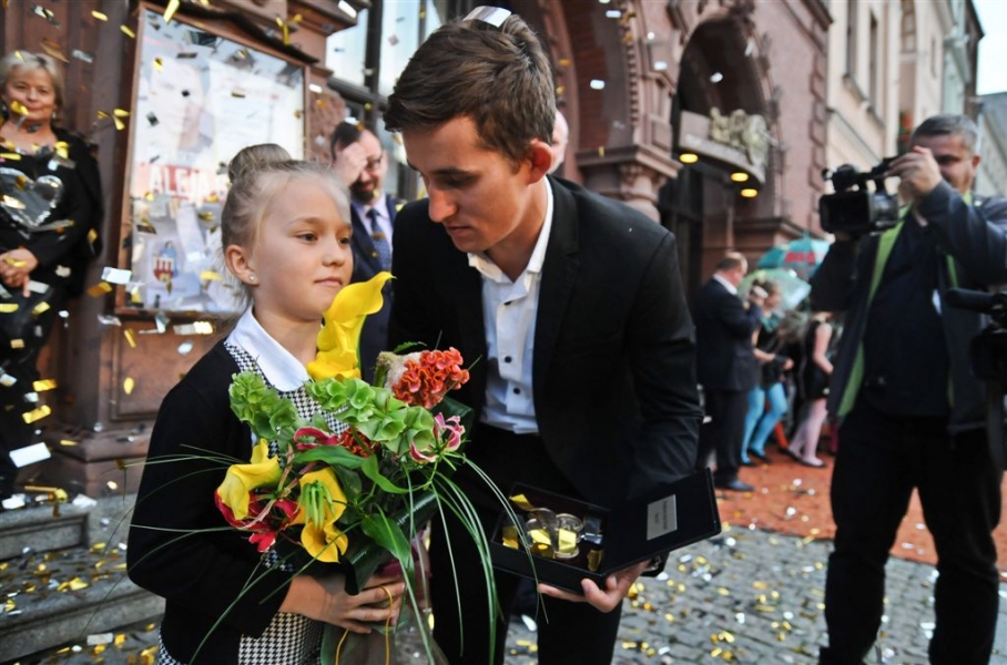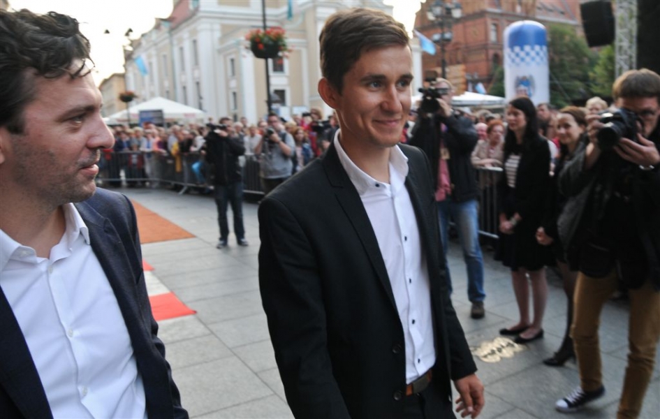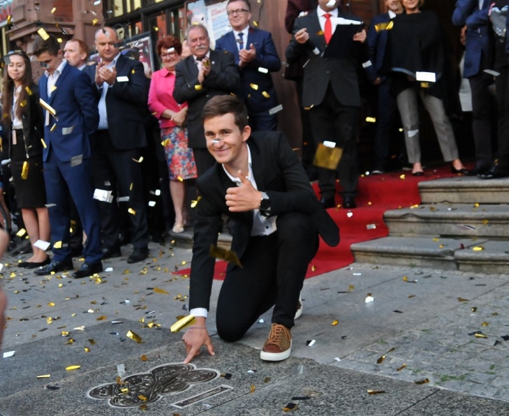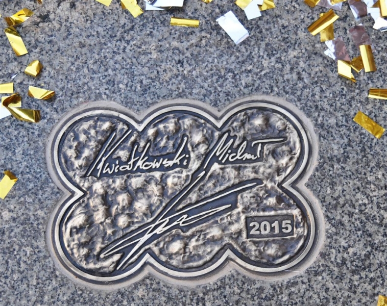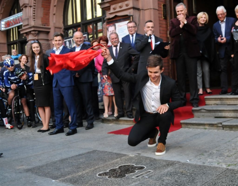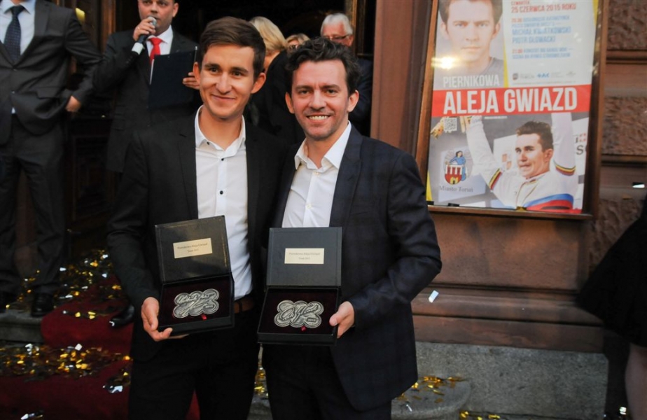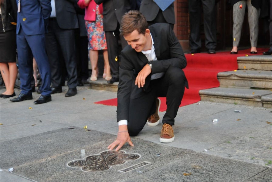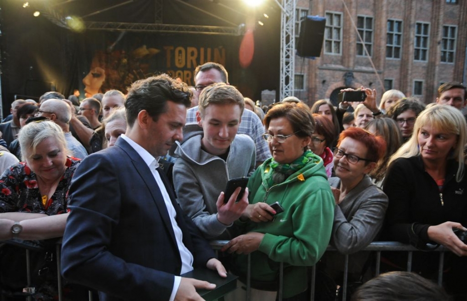 Autografy kolarskiego mistrza świata Michała Kwiatkowskiego i znanego aktora Piotra Głowackiego są już w Piernikowej Alei Gwiazd 2015! Laureaci odsłonili je 25 czerwca 2015 r. podczas obchodów Dni Torunia. Wydarzenie uświetnił koncert zespołu Igora Nowickiego. Fot. Lech Kamiński