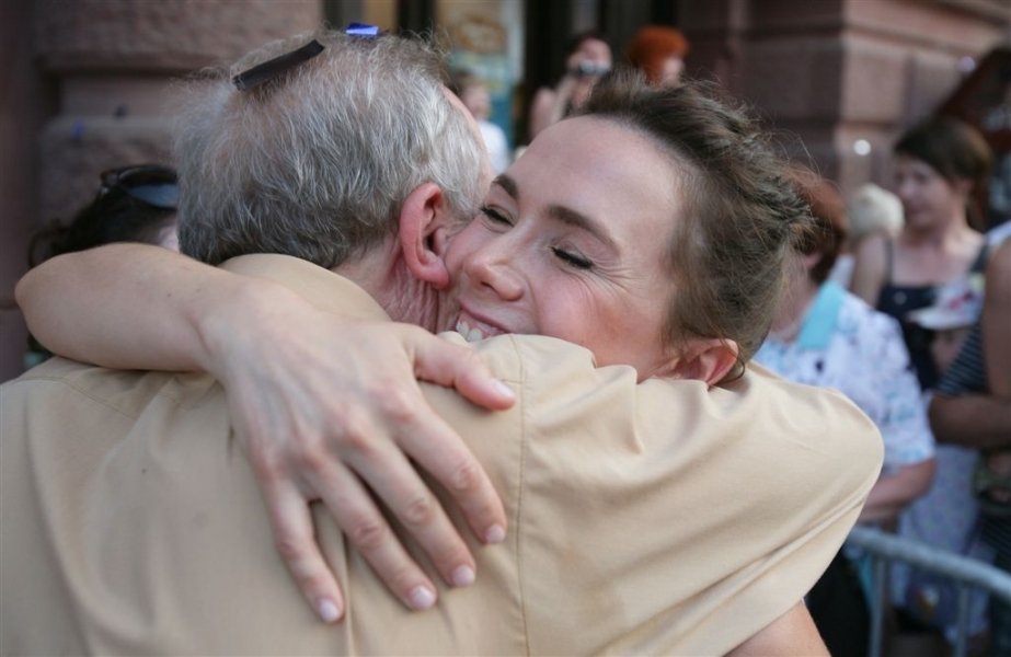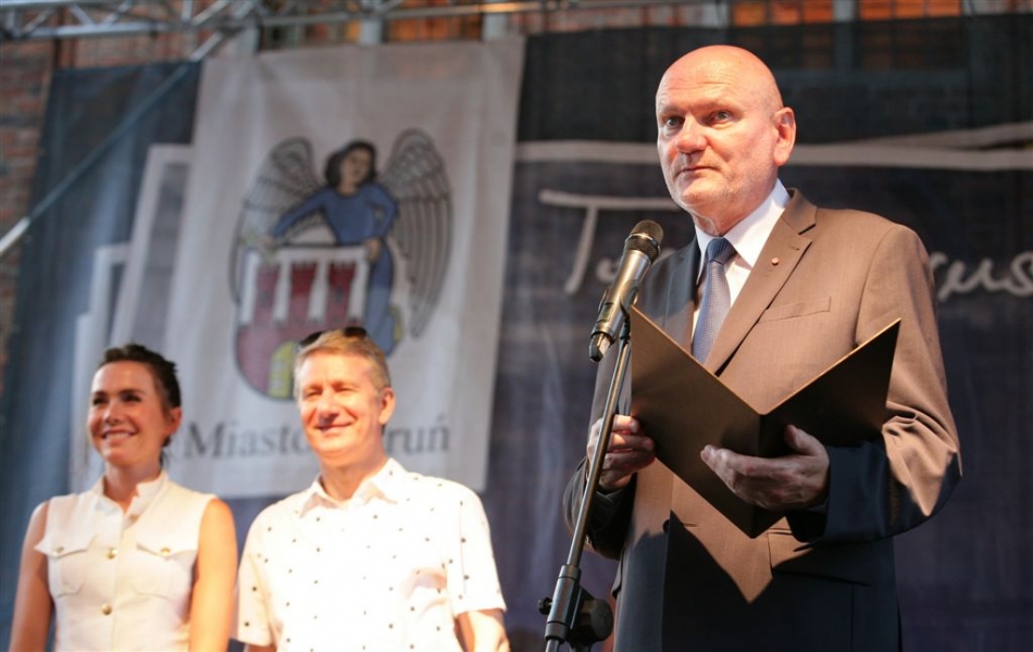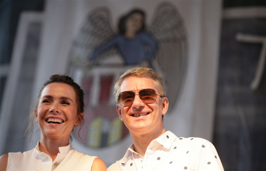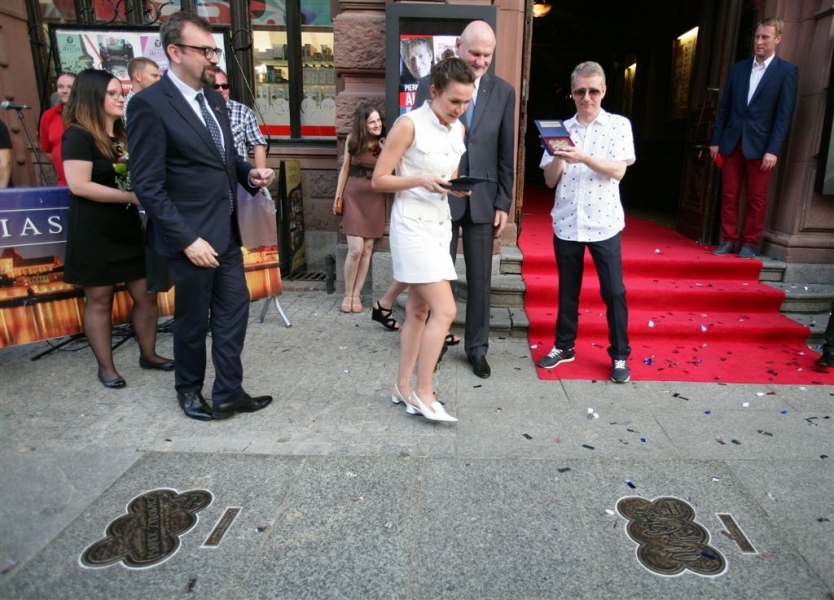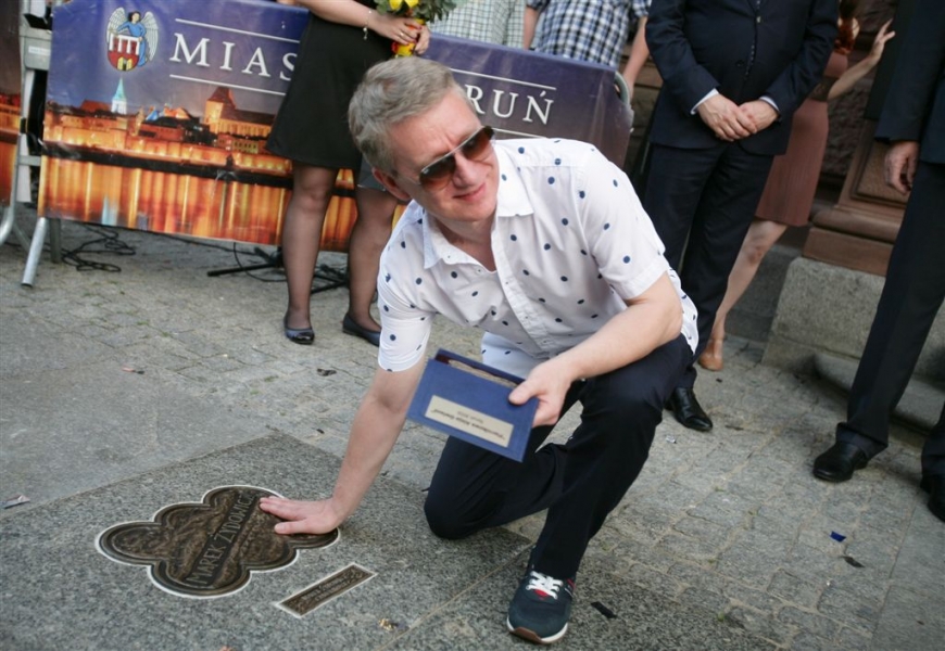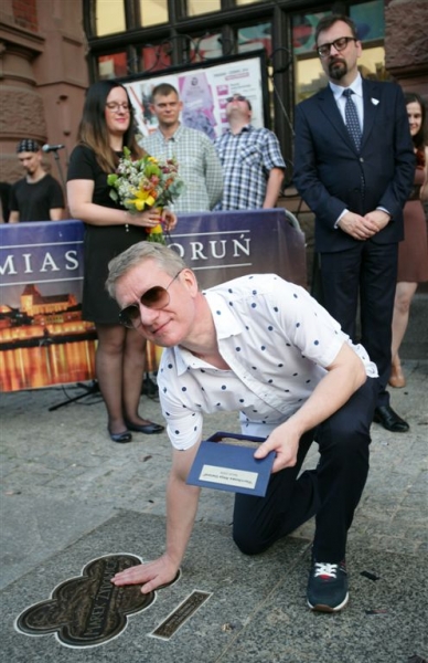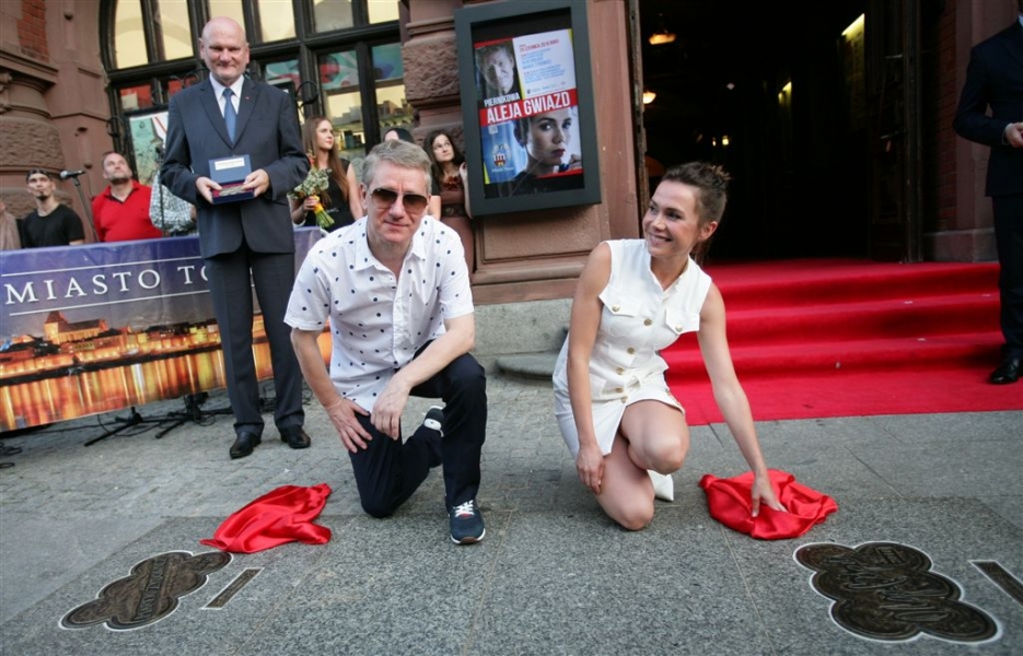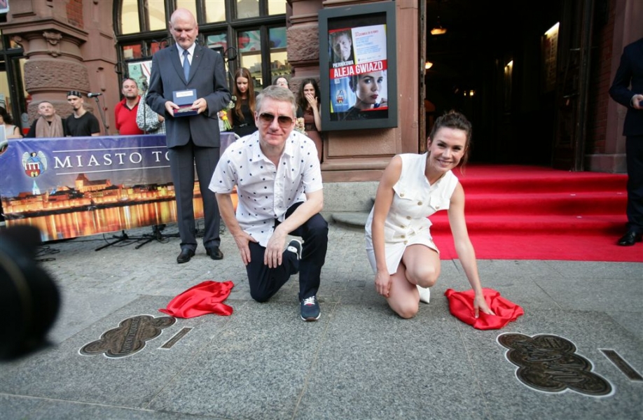 Olga Bołądź i Marek Żydowicz mają swoje katarzynki w Piernikowej Alei Gwiazd w Toruniu. Odsłonili je 24 czerwca 2016 r. podczas obchodów Święta Miasta. Fot. Adam Zakrzewski