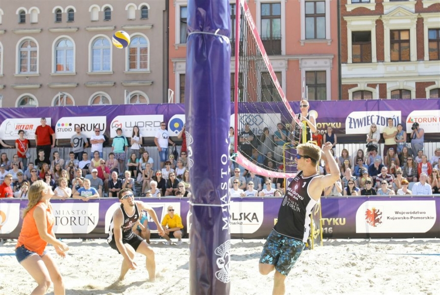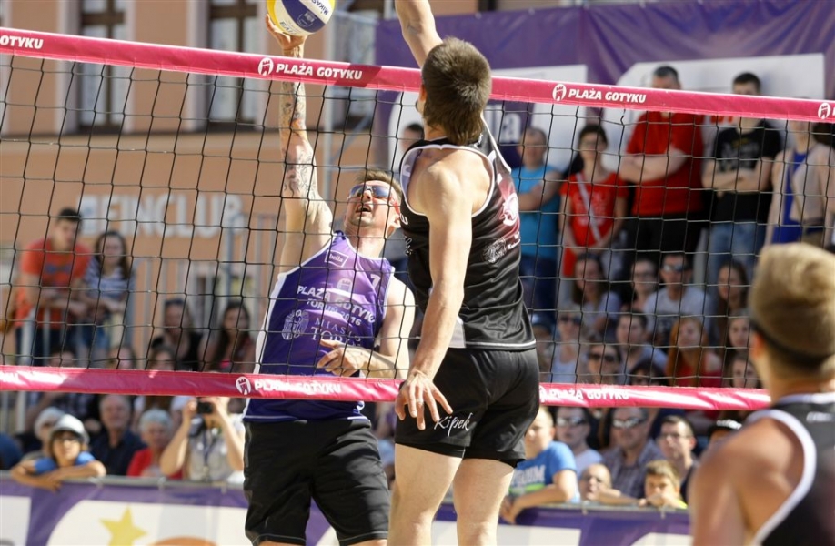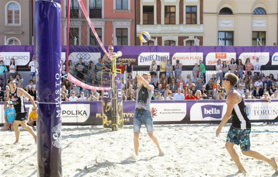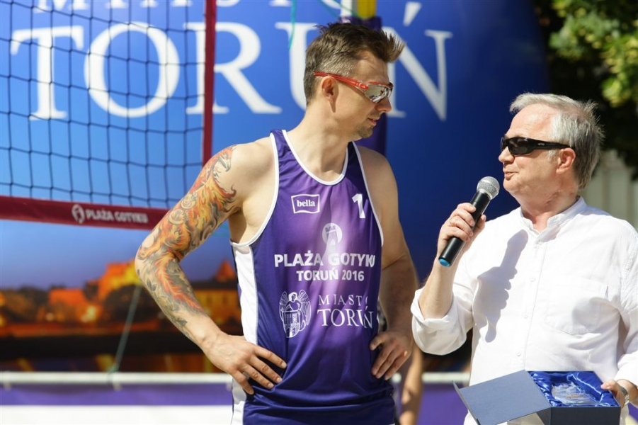 Mecz Gwiazd był 5 czerwca 2016 r. atrakcją trwających na Rynku Nowomiejskim w Toruniu rozgrywek w siatkówce plażowej PLAŻA GOTYKU 2016. Wystąpili w nim: Dominik Witczak, Krzysztof Ignaczak, Edward Skorek, Paweł Zagumny, Marcin Waliński i Kamil Droszyński. Fot. Adam Zakrzewski