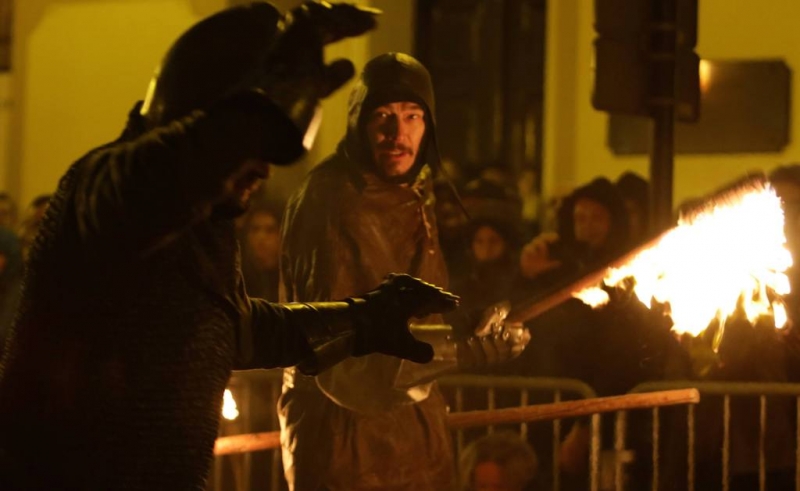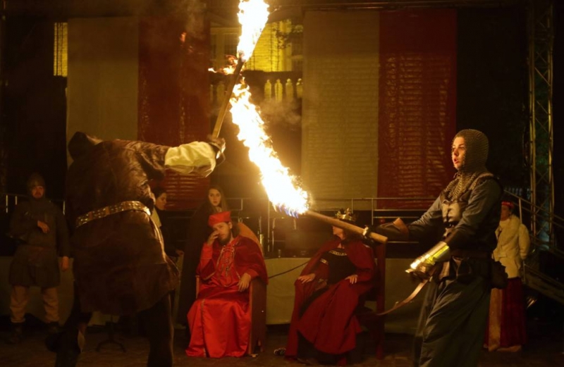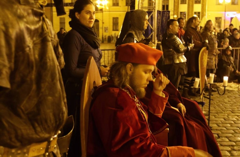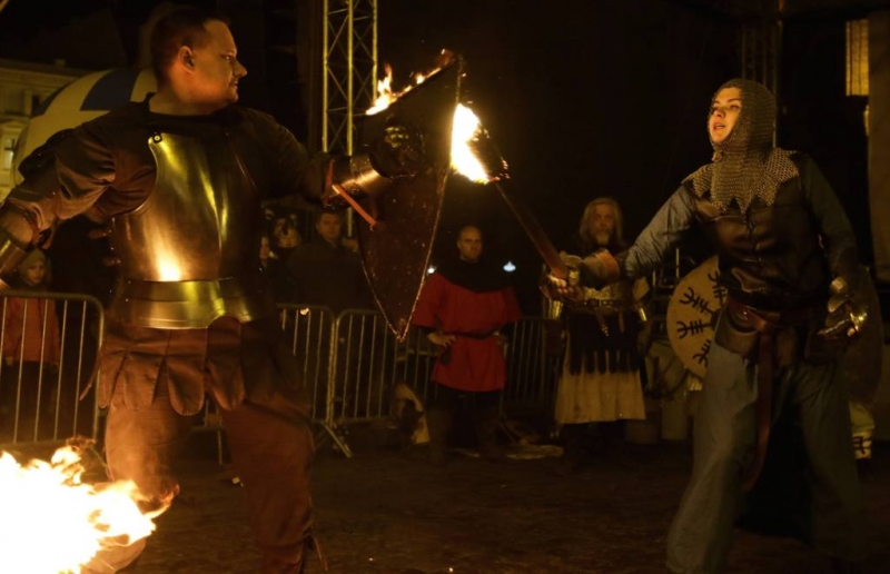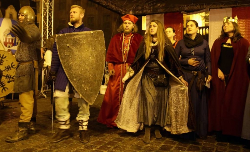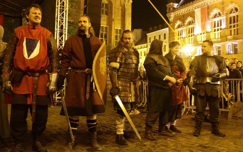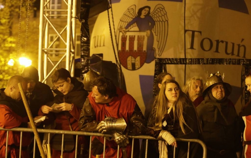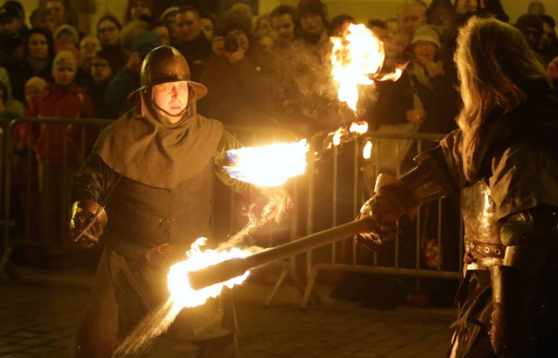 Nocny pokaz walk rycerzy z ogniem rozświetlił Rynek Staromiejski późnym wieczorem, 2 maja 2017 roku. Widowiskowym walkom towarzyszył występ Chóru Męskiego Copernicus. Pokaz walk był częścią Rycerskiej Majówki, której główne wydarzenia zaplanowano w dniach 1-3 maja na Zamku Krzyżackim, gdzie przez 3 dni trwa jarmark średniowieczny.