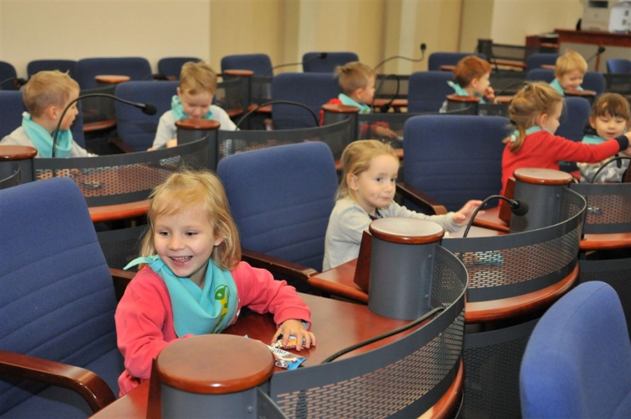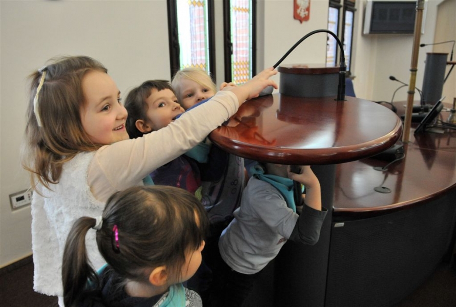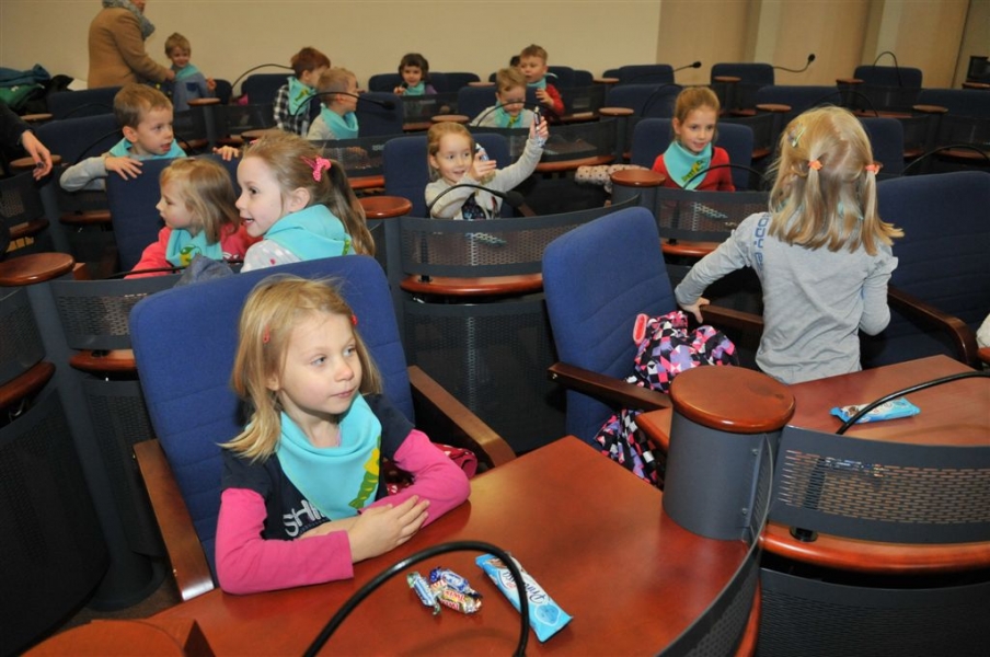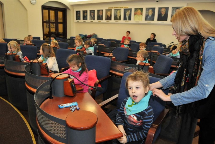 Przedszkolaki w sali Rady Miasta Torunia