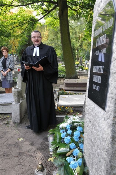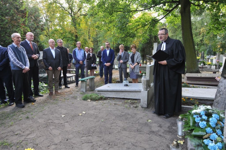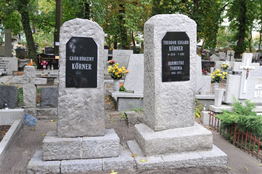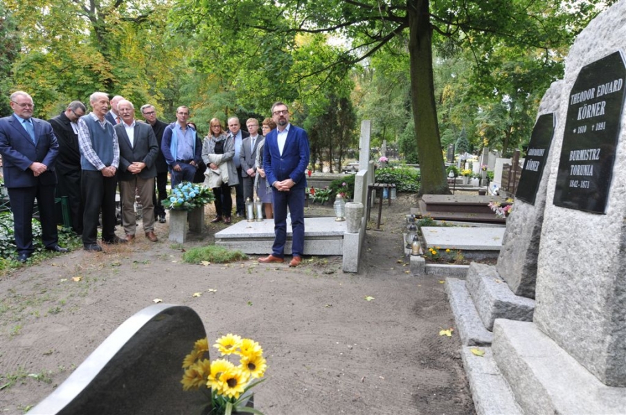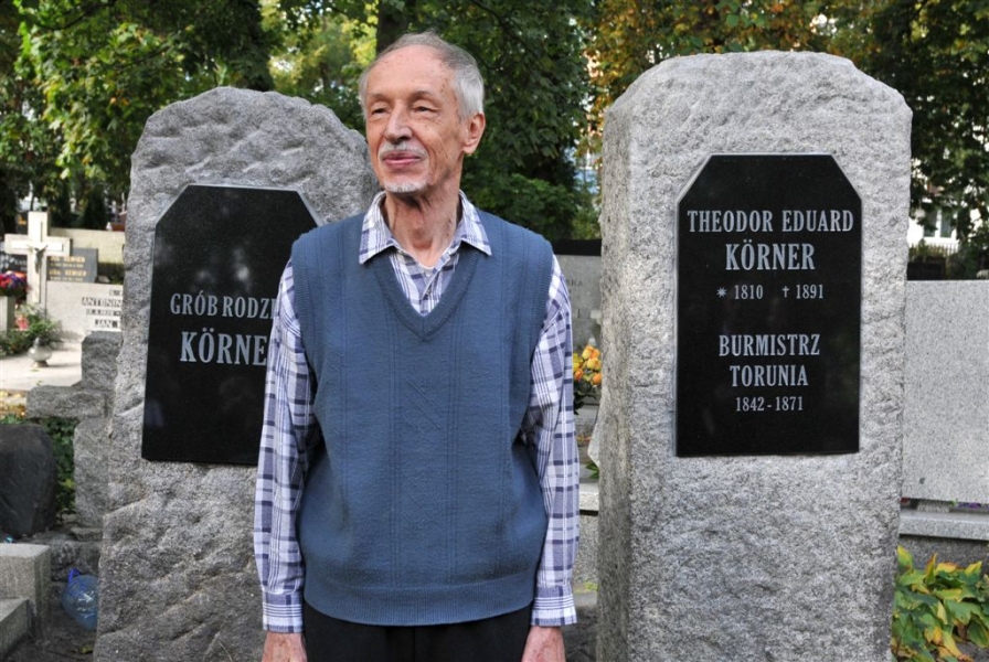 Wybitny niemiecki językoznawca prof. Konrad Koerner, który 29 września 2016 roku, podczas uroczystej inauguracji roku akademickiego na UMK, odebrał doktorat honoris causa, w piątek złożył kwiaty na cmentarzu św. Jerzego, na grobie swojego pradziadka Theodora Eduarda Körnera, wybitnego burmistrza Torunia w latach 1842-1871. Nagrobki rodziny Körnerów zostały odnowione w 2016 r. wspólnym staraniem miasta i uniwersytetu. Fot. Małgorzata Litwin