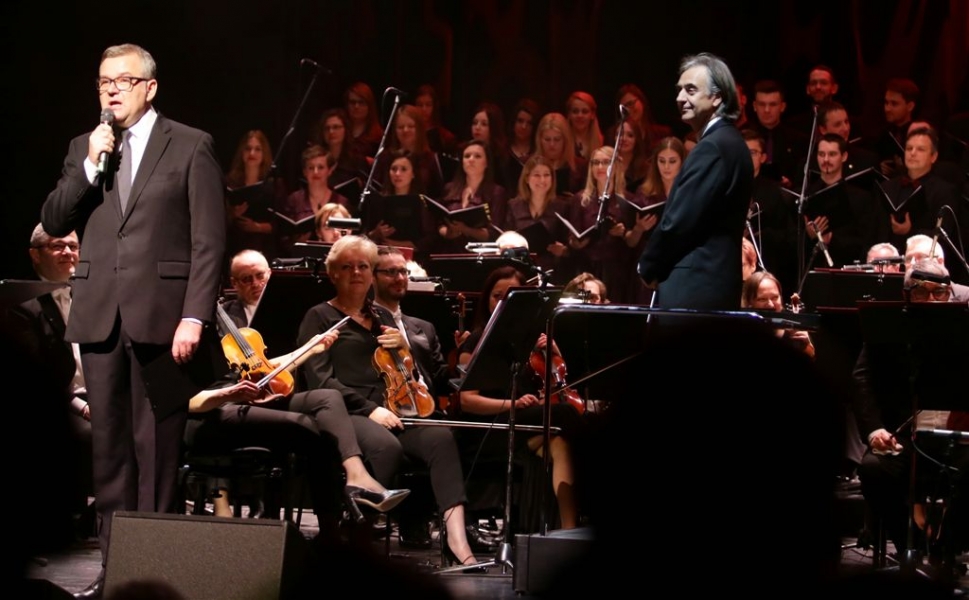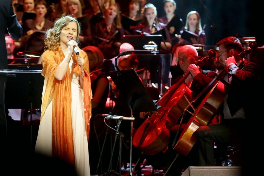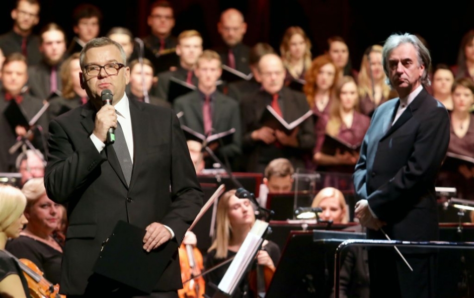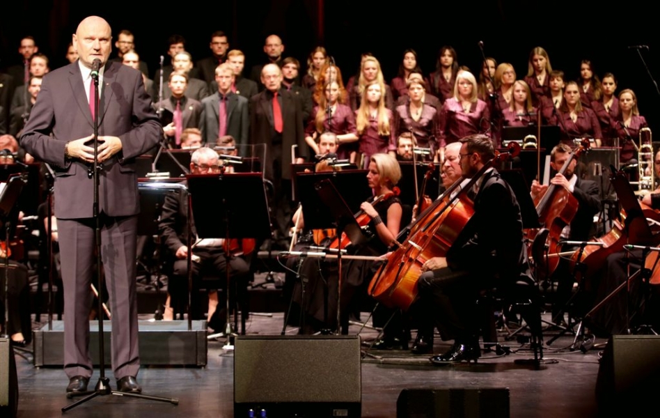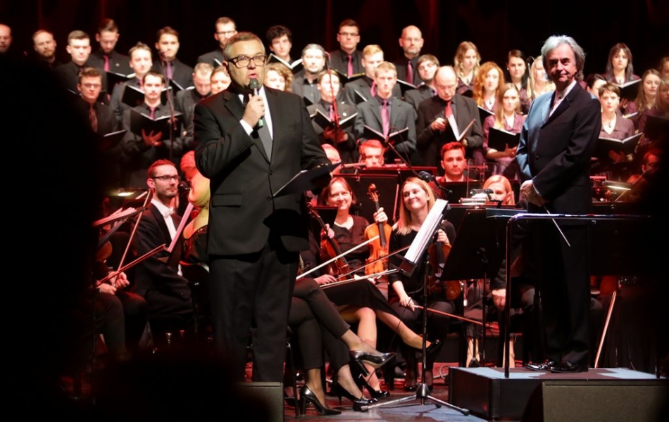 Najsłynniejsze pieśni niepodległościowe i patriotyczne zabrzmiały w Toruniu 11 listopada 2016 r. podczas koncertu "Raduje się serce!" w CKK Jordanki. Wystąpili znani polscy artyści: Włodzimierz Korcz, Alicja Majewska, Hanna Śleszyńska, Zbigniew Wodecki, Piotr Gąsowski, Dorota Osińska, Tomasz Steciuk i Artur Andrus z towarzyszeniem Toruńskiej Orkiestry Symfonicznej pod dyrekcją Mariusza Smolija i Chór UMK, przygotowany przez A.Kaczyńskiego. Fot. Adam Zakrzewski