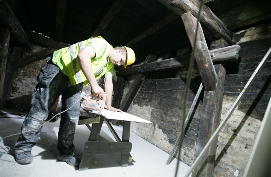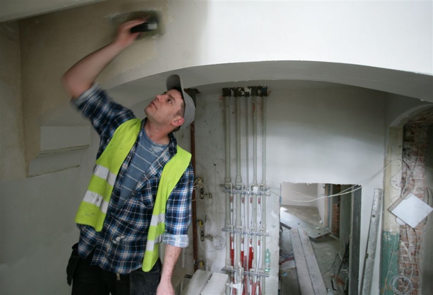 Trwa remont i modernizacja budynku przy ul. Chłopickiego 12 w Toruniu, zniszczonego po pożarze w 2014 r. Zadanie obejmuje pełny zakres prac wykończeniowych i instalacyjnych. Budynek przechodzi również termomodernizację oraz roboty konserwatorskie elewacji i wnętrza. Po modernizacji, która zakończy się we wrześniu 2016 r., w budynku znajdzie się miejsce dla 16 rodzin. Koszt prac to 2,5 mln zł, w tym 1,35 mln zł dofinansowania pozyskanego przez miasto z Funduszu Dopłat. Fot. Adam Zakrzewski