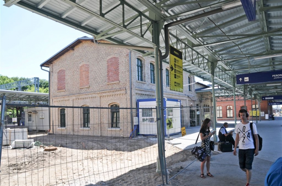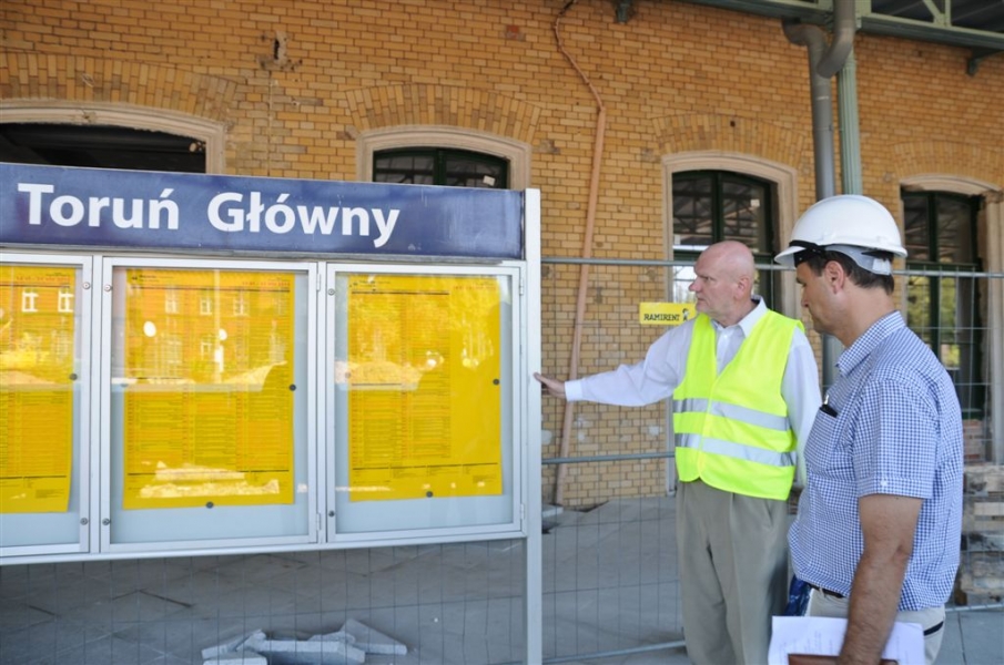 Dworzec PKP Toruń Główny, przejęty przez miasto od kolei w 2014 r., przechodzi obecnie największą w swoich dziejach modernizację. Trwa przebudowa i renowacja budynku głównego, prace wykończeniowe na peronach i w przejściach podziemnych wraz z montażem schodów ruchomych, a także budowa wiat na peronach od strony ul. Kujawskiej i Podgórskiej. W otoczeniu dworca powstaje zintegrowana pętla autobusowo-parkingowa. Ponad połowa kosztów projektów zostanie sfinansowana z funduszy unijnych. Fot. Lech Kamiński