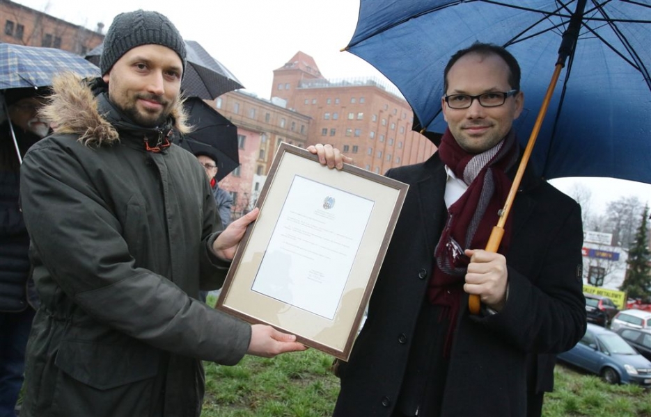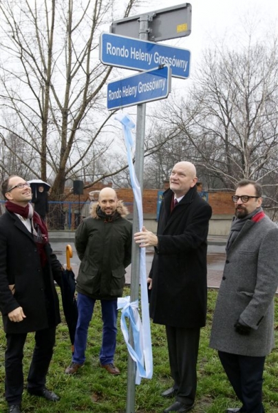 Skrzyżowanie ulic Łokietka, Kościuszki i Chrobrego, w sąsiedztwie Młynów Toruńskich nosi od 10 grudnia 2016 r. nazwę Ronda Heleny Grossówny. Wniosek w sprawie nazwania ronda imieniem sławnej aktorki złożył Krzysztof Trojanowski - mieszkaniec Torunia, a jednocześnie filmoznawca i badacz biografii Heleny Grossówny. Towarzystwo Miłośników Torunia zaopiniowało pozytywnie jego propozycję. Fot. Adam Zakrzewski