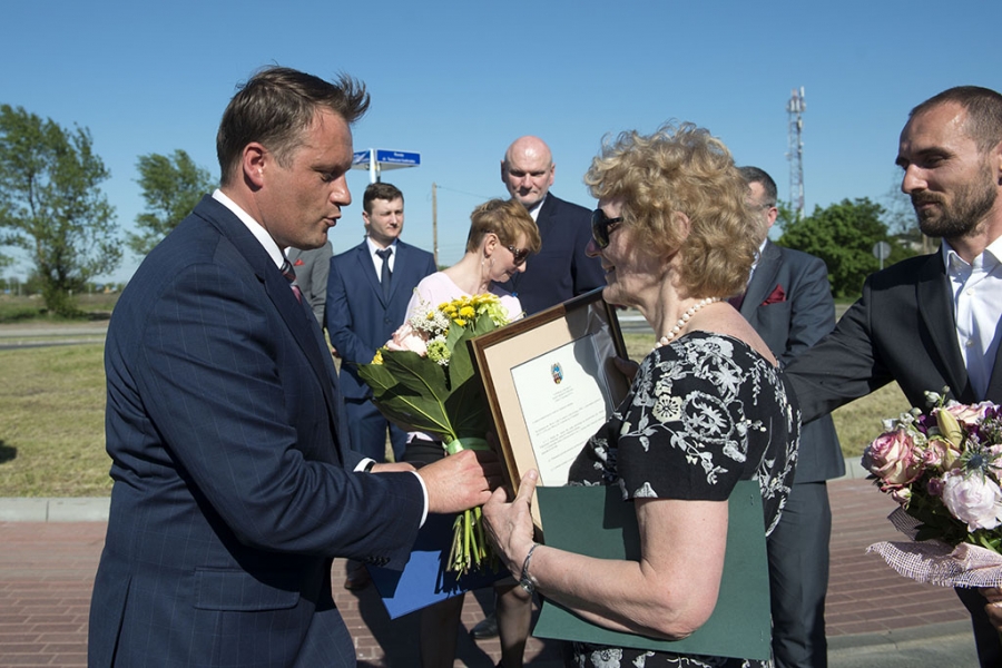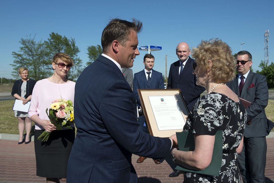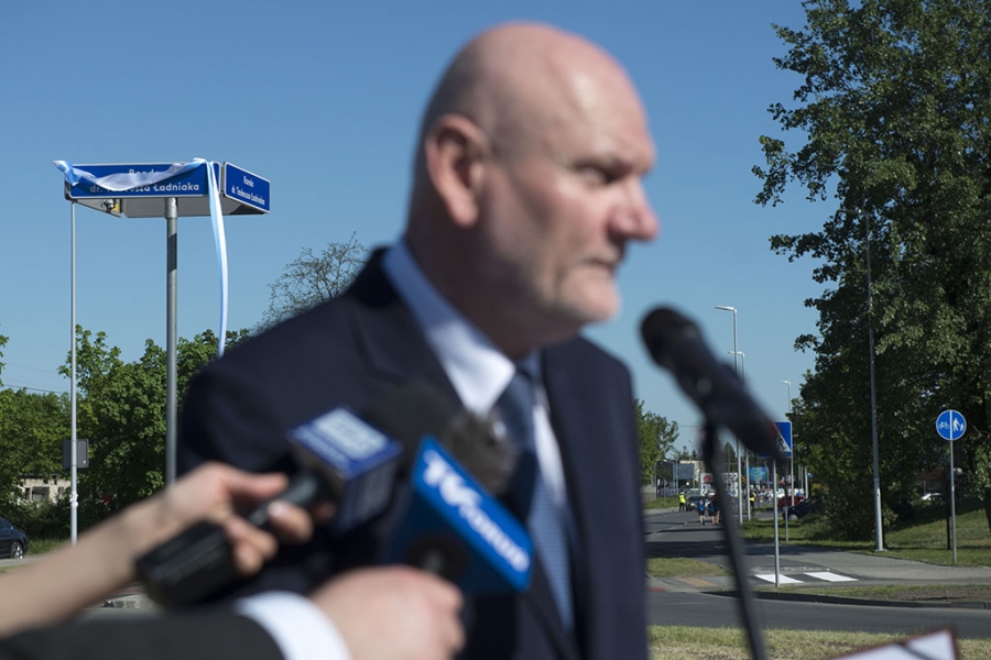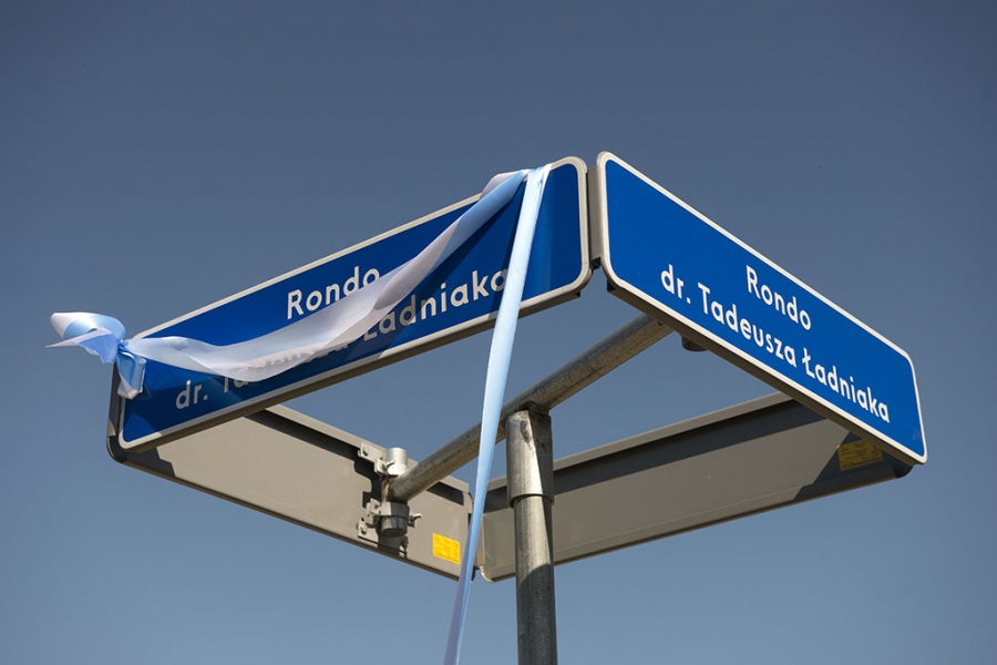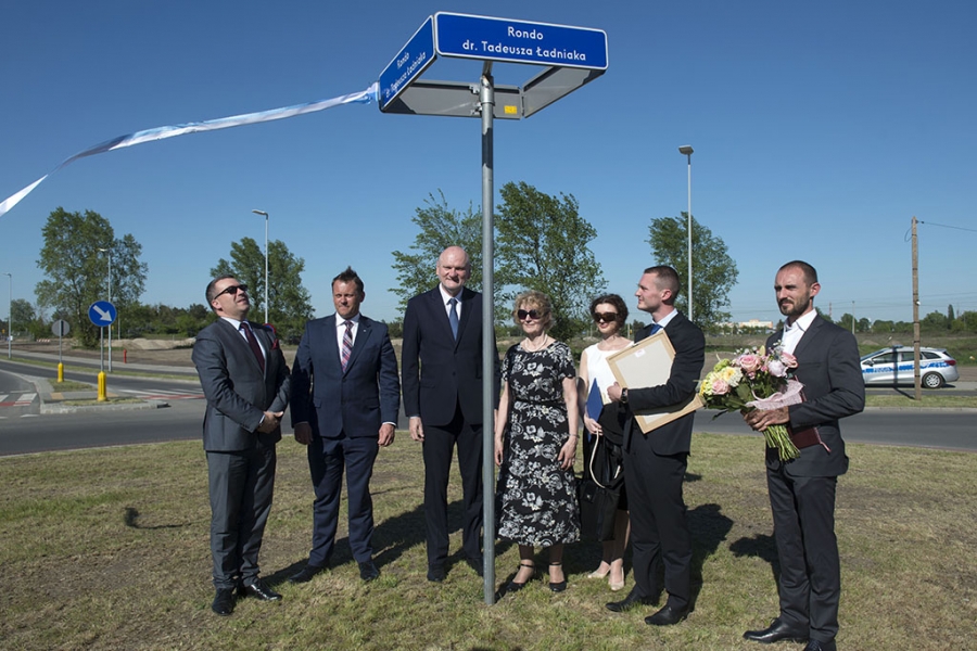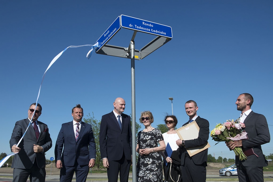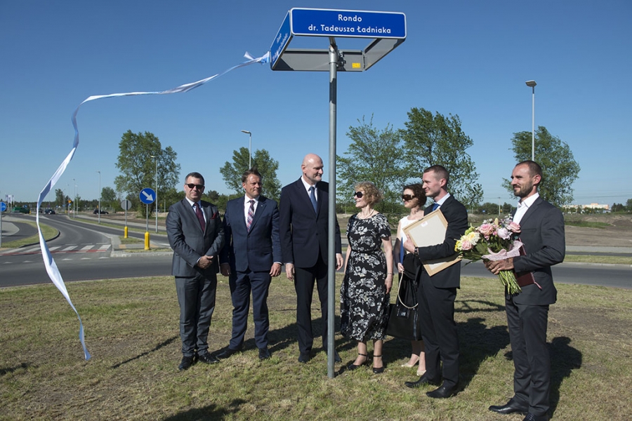 Uroczyste nadanie imienia dr. Tadeusza Ładniaka skrzyżowaniu ulic Polnej, Traktorowej i Fortecznej odbyło się 19 maja 2017 r. Wzięły w nim udział władze miasta z prezydentem Michałem Zaleskim, przedstawiciele władz wojewódzkich oraz rodzina doktora – żona i dzieci. Fot. Wojtek Szabelski