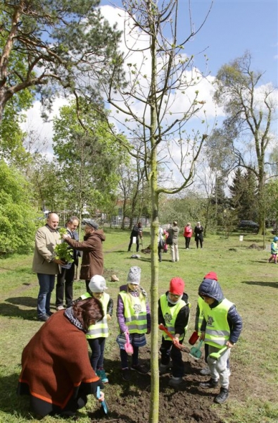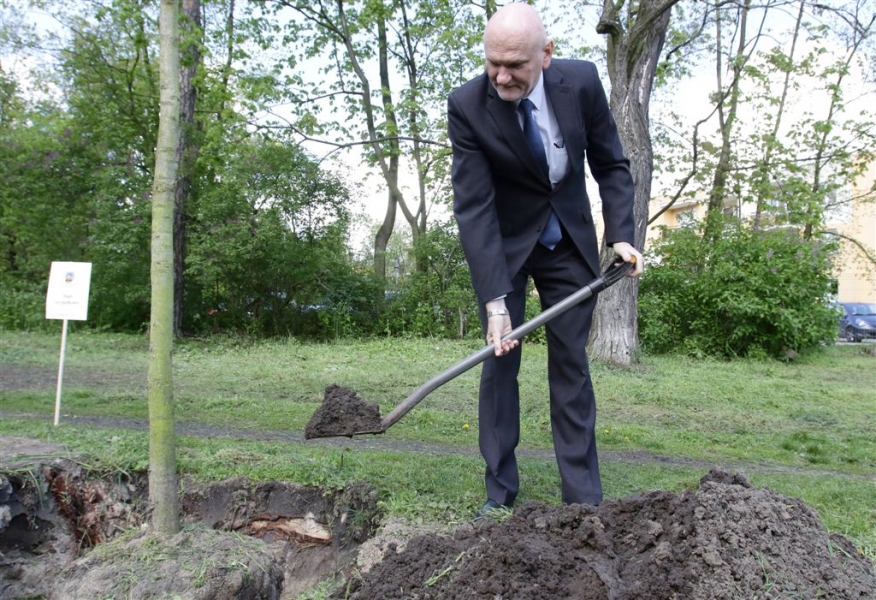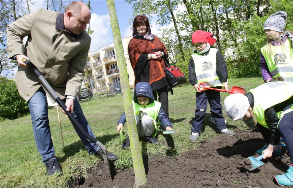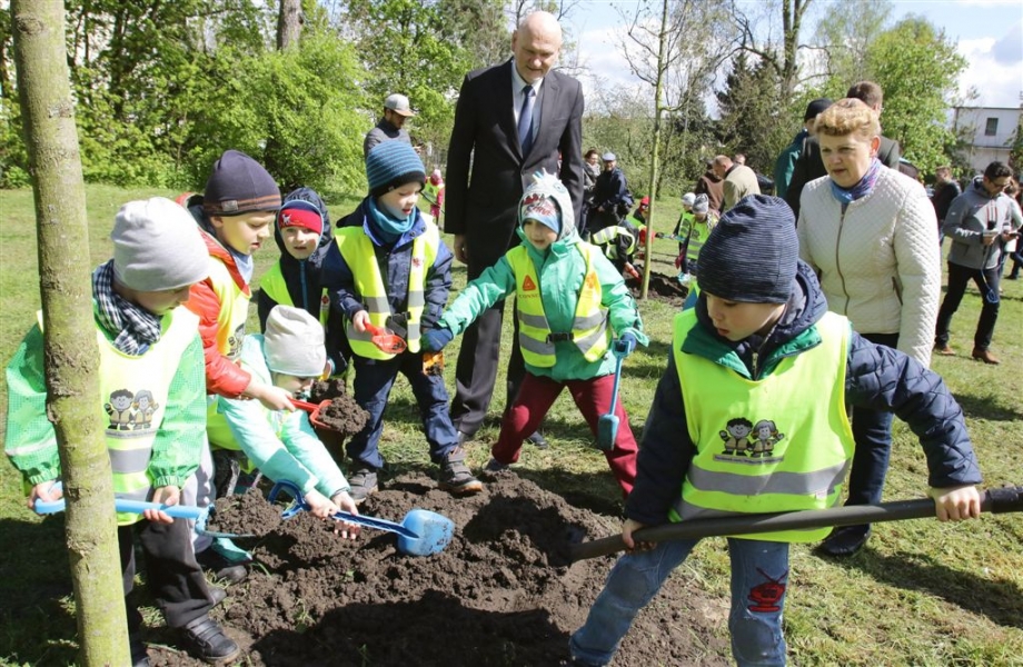 9 maja 2017 r. w toruńskim Parku Tysiąclecia swoje drzewa posadzili prezydent Torunia Michał Zaleski, marszałek Piotr Całbecki i przewodniczący sejmiku Ryszard Bober. To nasadzenia zastępcze za drzewa, których wycinka była niezbędna w związku z trwającą rozbudową Wojewódzkiego Szpitala Zespolonego w Toruniu. Drzewa sadziły też wspólnie z VIP-ami dzieci z pobliskiego Przedszkola Miejskiego nr 12, które do parku często chodzą na spacery. Fot. Adam Zakrzewski