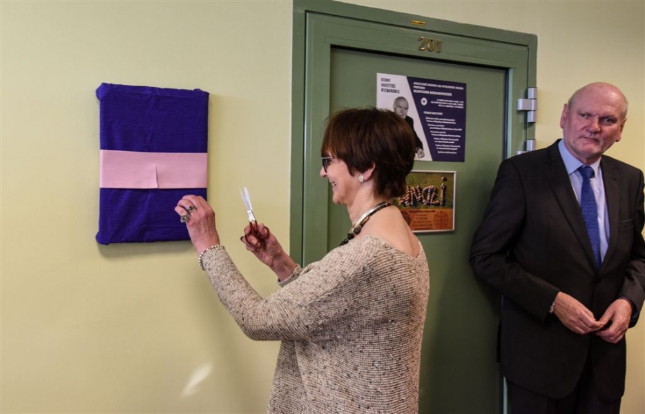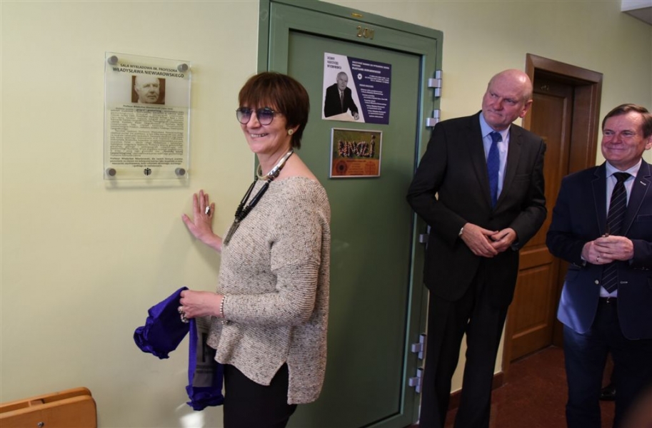 Imię prof. Władysława Niewiarowskiego, zmarłego w 2015 r. wybitnego geografa i geomorfologa, specjalisty w zakresie badań stratygrafii i paleogeografii czwartorzędu nosi od 31 marca 2016 r. sala 201 budynku Wydziału Nauk o Ziemi UMK przy ul. Lwowskiej 1. Odsłonięcia tablicy pamiątkowej dokonali: córka - Bożena Niewiarowska-Miler, prezydent Torunia - Michał Zaleski - niegdyś student profesora, dziekan Wydziału - profesor Wojciech Wysota oraz kierownik Katedry Geomorfologii i Paleogeografii Czwartorzędu - prof. Leon Andrzejewski. Fot. Lech Kamiński