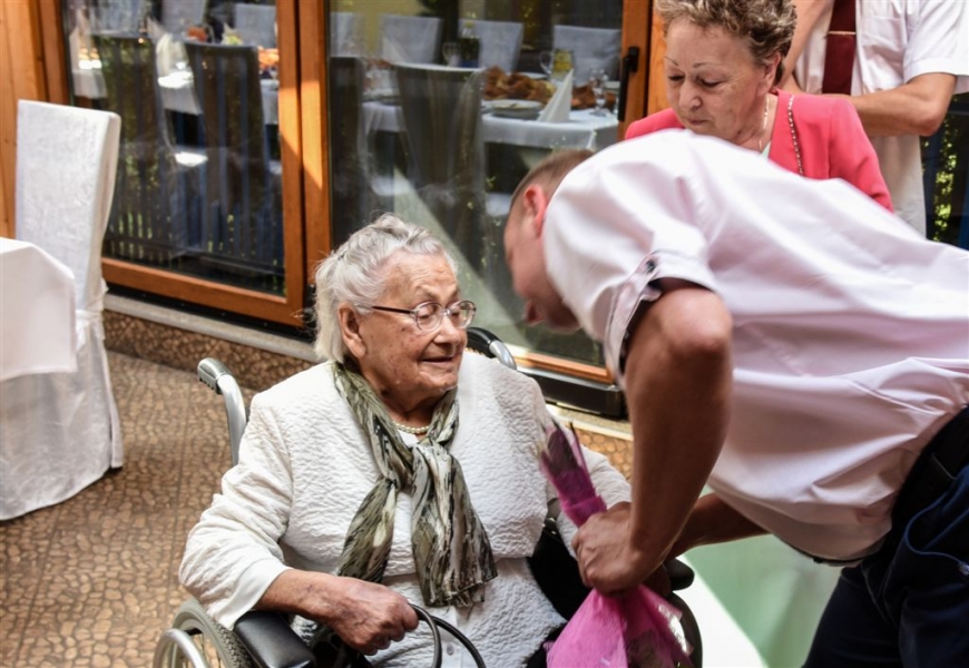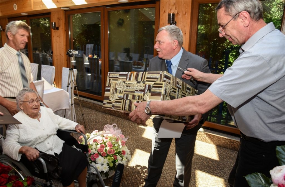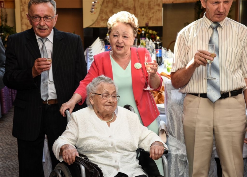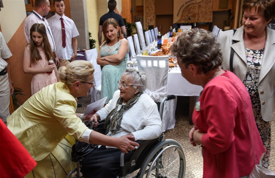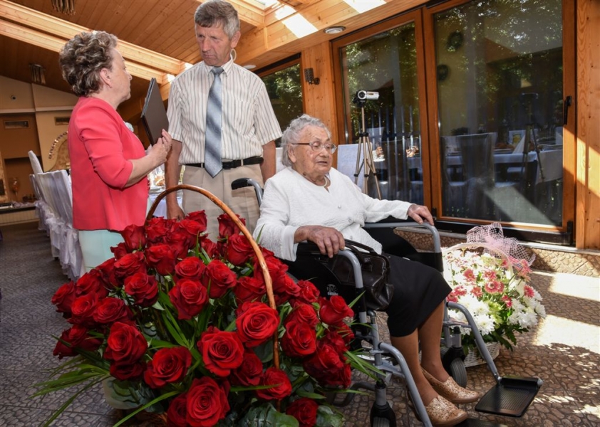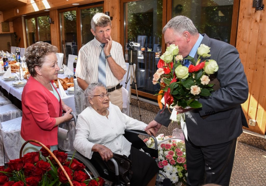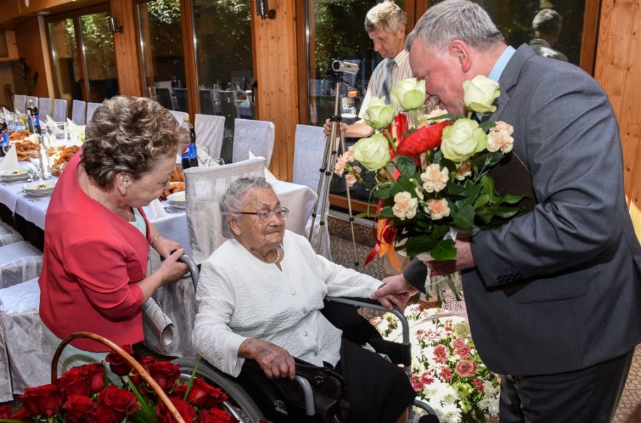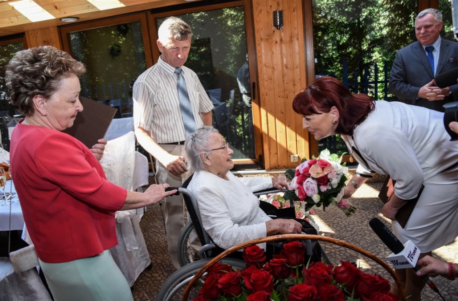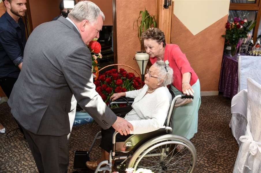 Setne urodziny obchodziła 8 czerwca 2016 roku pani Marta Ottlewska z Torunia. Z tej okazji życzenia złożył jej zastępca prezydenta Torunia Zbigniew Fiderewicz. Fot. Lech Kamiński