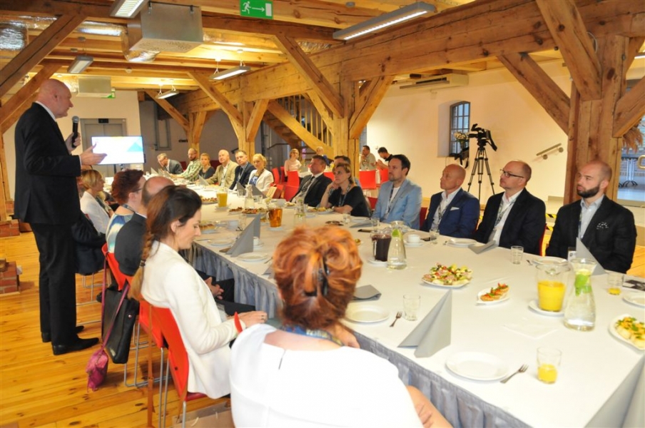 Kolejne Śniadanie Biznesowe Prezydenta Miasta Torunia, którego organizatorem jest Centrum Wsparcia Biznesu w Toruniu, odbyło się 19 maja 2017 r. Tym razem prezydent Michał Zaleski zaprosił do Międzynarodowego Centrum Spotkań Młodzieży toruńskich mecenasów kultury, czyli przedsiębiorców wspierających wydarzenia artystyczne w naszym mieście. Fot. Małgorzata Litwin