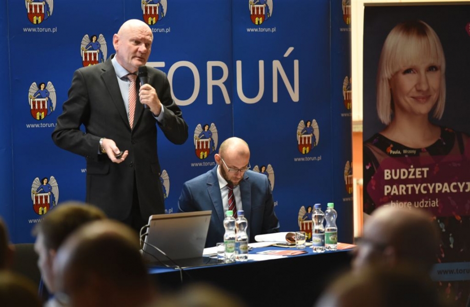Rozpoczął się cykl dyskusji o mieście prezydenta Torunia Michała Zaleskiego z mieszkańcami wszystkich trzynastu okręgów miasta. Pierwsze spotkanie, na toruńskich Stawkach, odbyło się 17 lutego 2016 r. Nowością są w tym roku warsztaty stolikowe przed spotkaniem głównym, na których mieszkańcy mają okazję bezpośrednio porozmawiać z prezydentem o problemach osiedlowych. Fot. Lech Kamiński