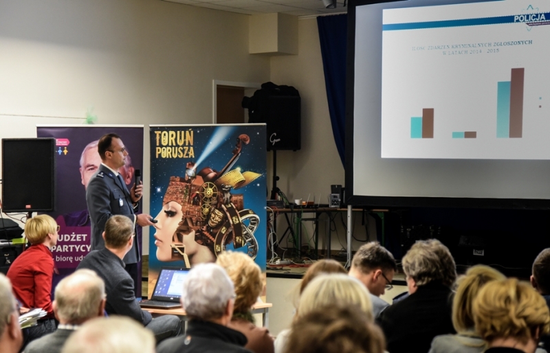 Mieszkańcy osiedli Bielawy i Grębocin rozmawiali z prezydentem Michałem Zaleskim w Szkole Podstawowej nr 35 w Toruniu. fot. Lech Kamiński