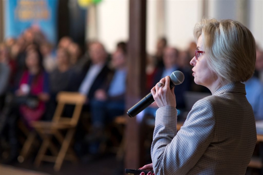 Monitoring wizyjny osiedla i lokalne drogi - m.in. te tematy cieszyły się największym zainteresowaniem mieszkańców Kaszczorka podczas spotkania prezydenta z mieszkańcami, które odbyło się 6 marca 2017 r. W spotkaniu z zastępcą prezydenta Zbigniewiem Fiderewiczem uczestniczyło ok. 60 mieszkańców. Fot. Wojtek Szabelski