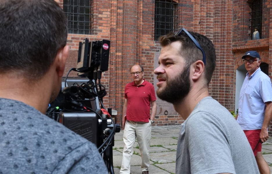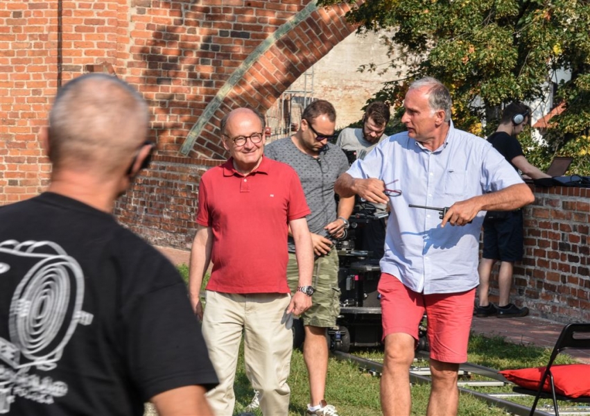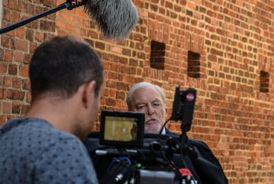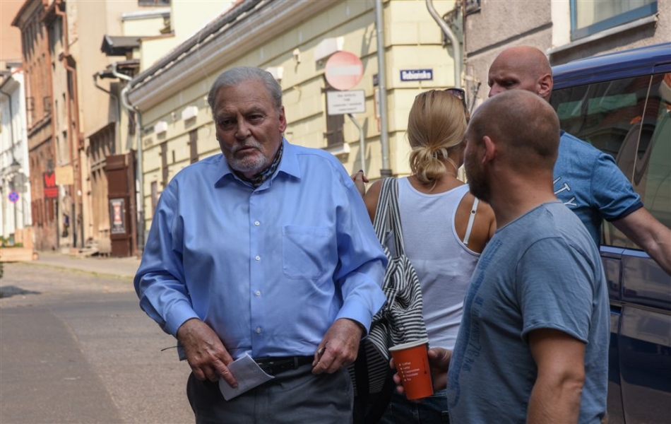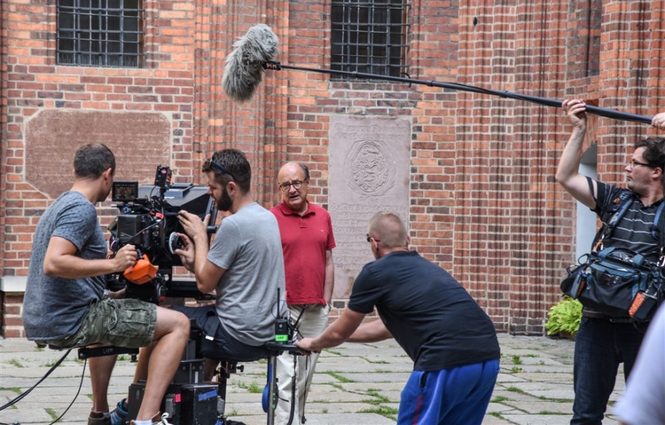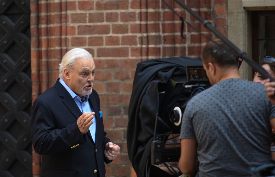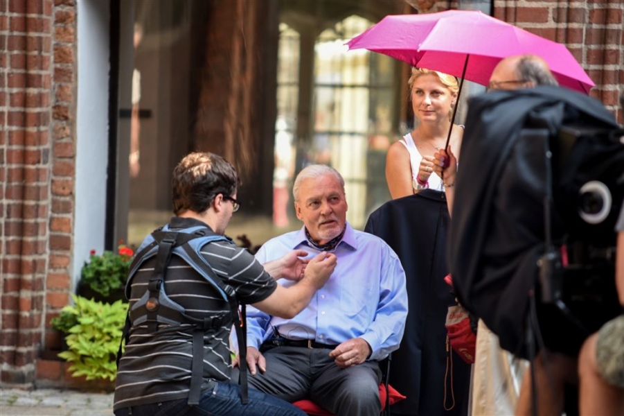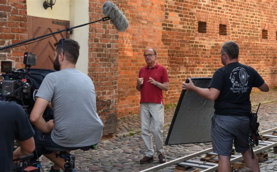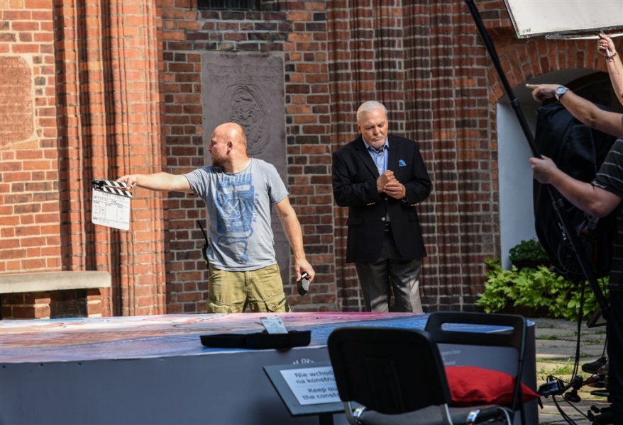 W Toruniu powstają zdjęcia do międzynarodowej superprodukcji dokumentalnej "Habit i zbroja" o historii zakonu krzyżackiego, w reżyserii dokumentalisty Pawła Pitery, znanego m.in. z filmu „Świadectwo” o Janie Pawle II. Filmowcy kręcą ujęcia m.in. w ruinach Zamku Krzyżackiego, na dziedzińcu ratusza, ul. Podmurnej oraz Kępie Bazarowej. 10 września na planie filmowym pojawił się Stacy Keach - amerykański aktor, reżyser, scenarzysta, producent i kompozytor, który w filmie "Habit i zbroja" pełni rolę narratora przeprowadzającego widzów przez historię państwa krzyżackiego. Fot. Lech Kamiński
