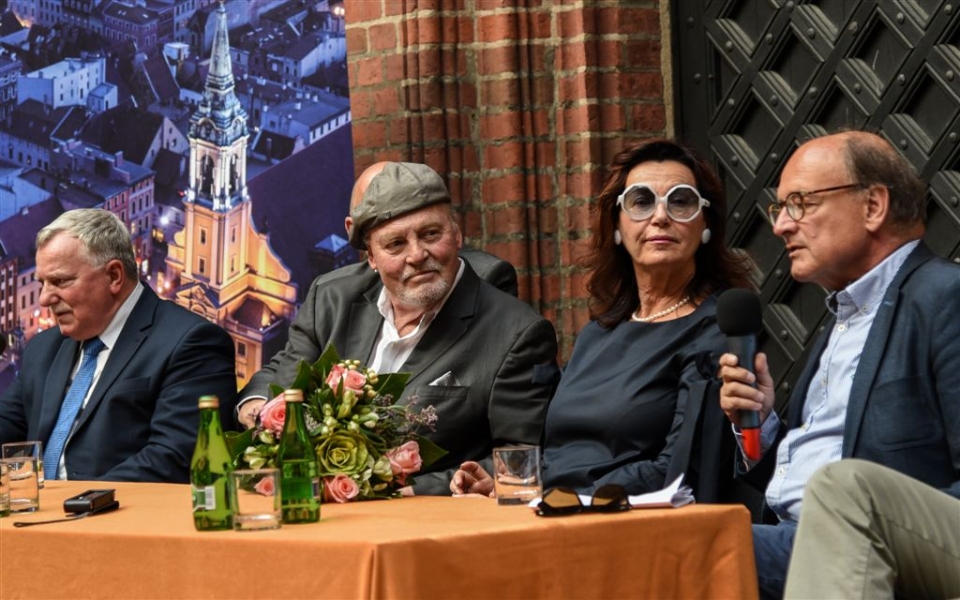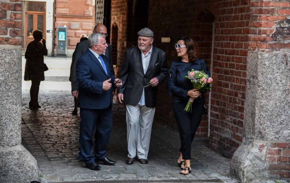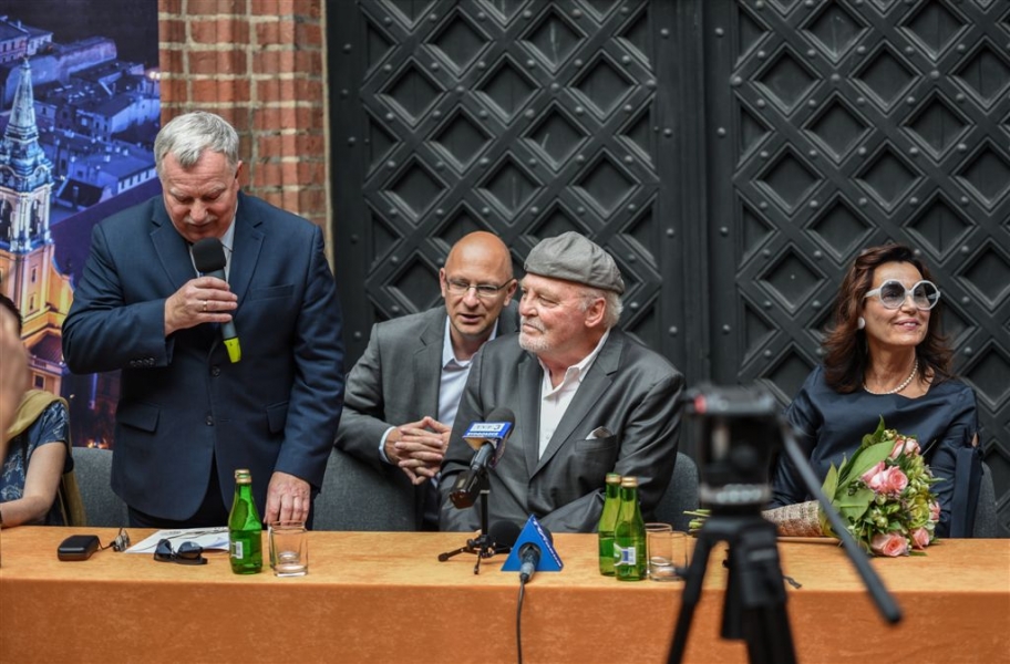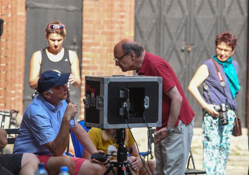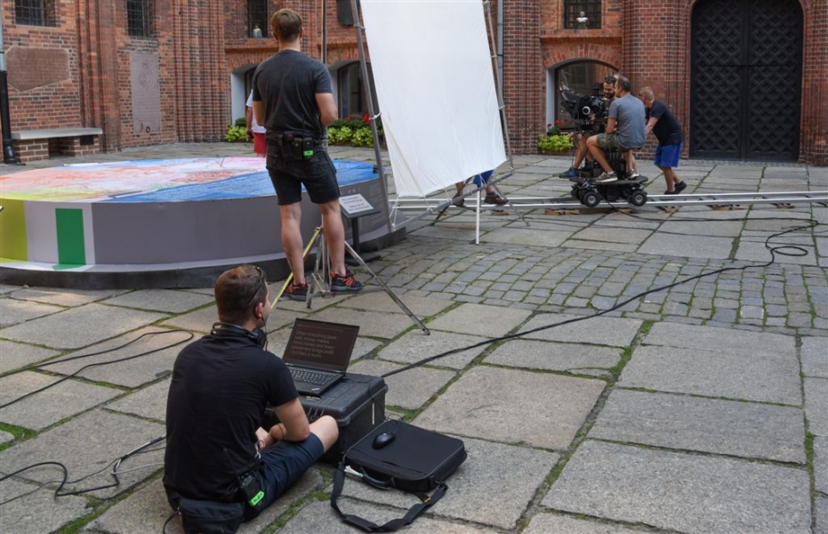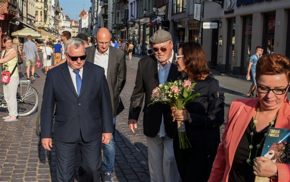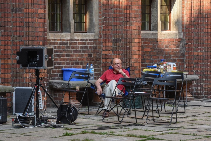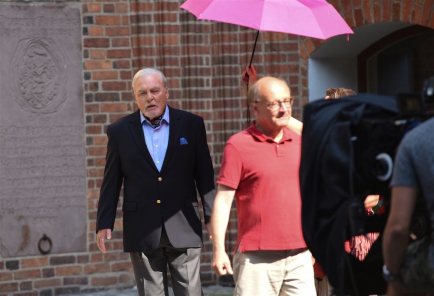 W Toruniu powstają zdjęcia do międzynarodowej superprodukcji dokumentalnej "Habit i zbroja" o historii zakonu krzyżackiego, w reżyserii dokumentalisty Pawła Pitery, znanego m.in. z filmu „Świadectwo” o Janie Pawle II. Filmowcy kręcą ujęcia m.in. w ruinach Zamku Krzyżackiego, na dziedzińcu ratusza, ul. Podmurnej oraz Kępie Bazarowej. 10 września na planie filmowym pojawił się Stacy Keach - amerykański aktor, reżyser, scenarzysta, producent i kompozytor, który w filmie "Habit i zbroja" pełni rolę narratora przeprowadzającego widzów przez historię państwa krzyżackiego. Fot. Lech Kamiński