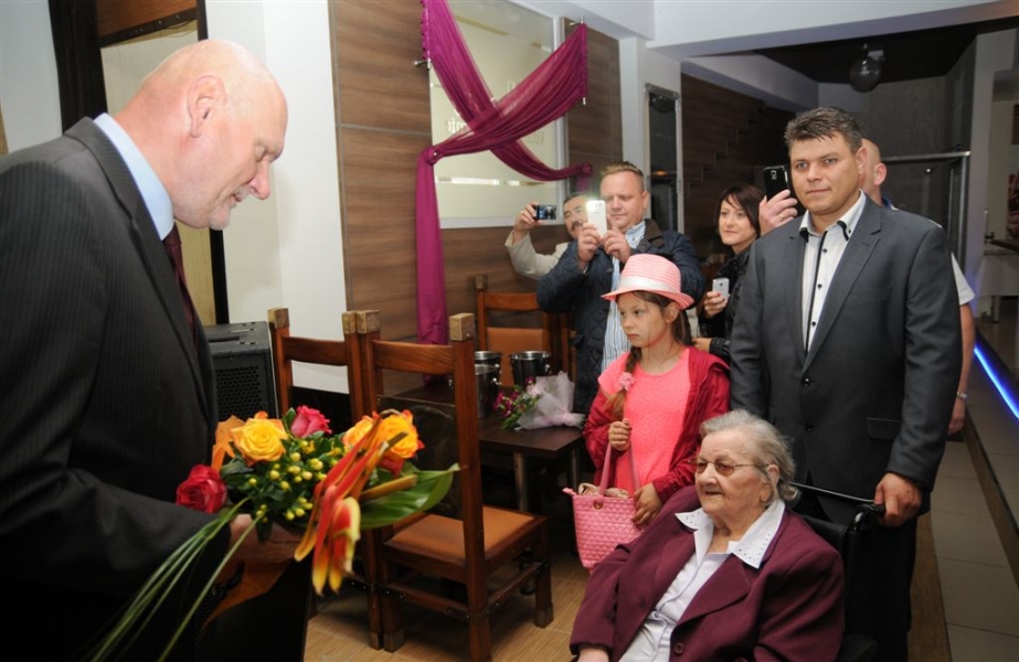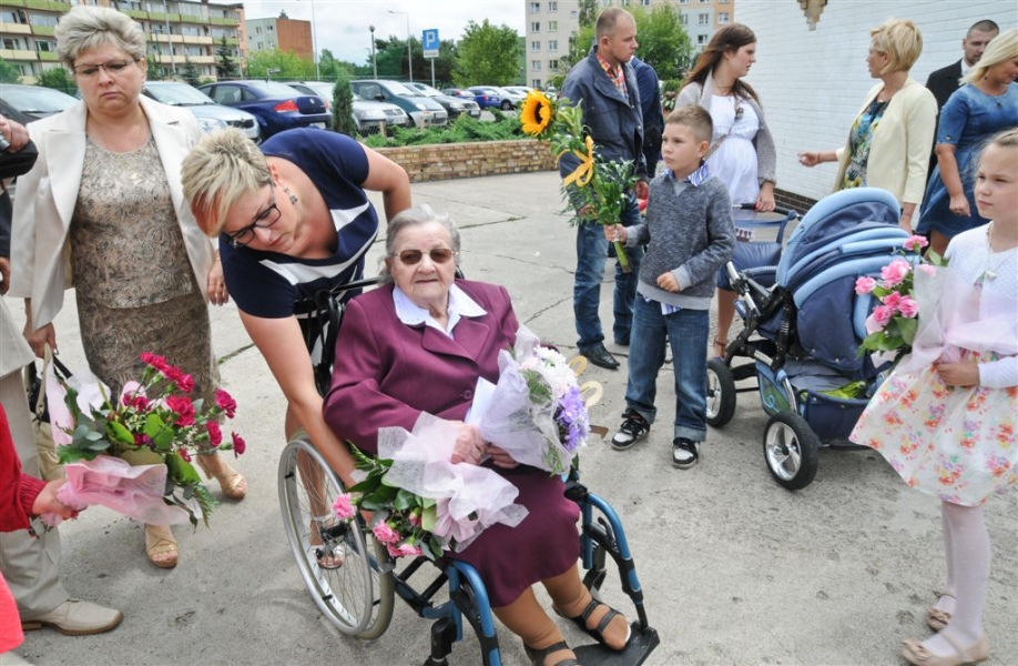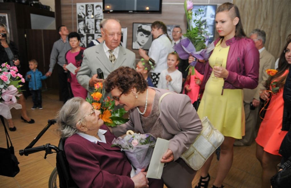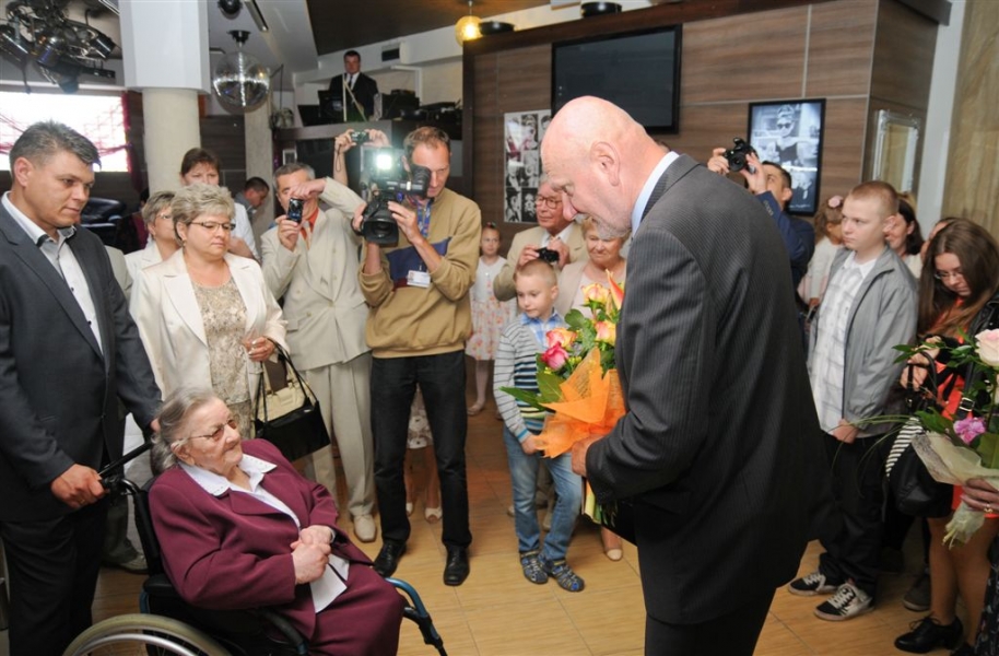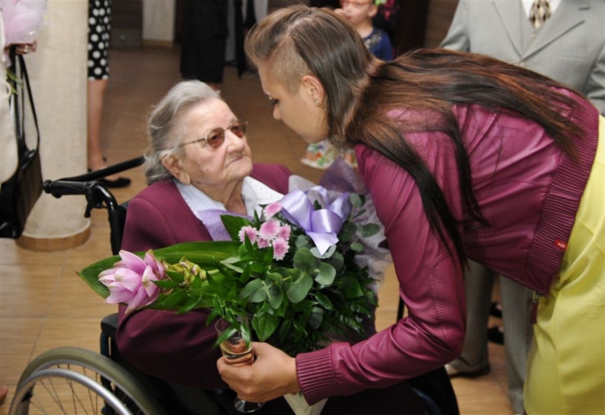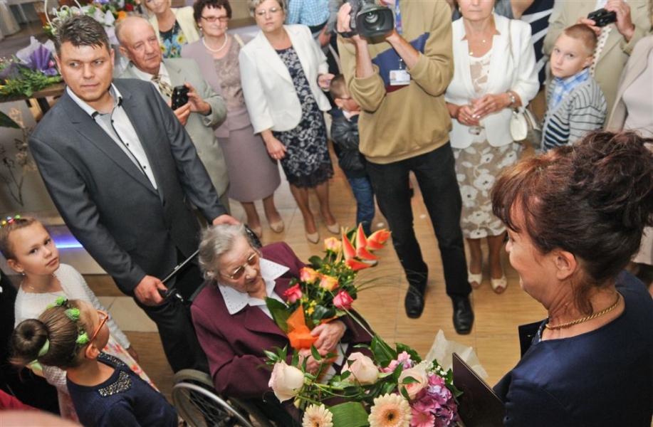 Sto lat skończyła 26 lipca 2015 r. torunianka Władysława Rojek. Z tej okazji odwiedził ją z listem gratulacyjnym i bukietem kwiatów prezydent Torunia Michał Zaleski. Fot. Lech Kamiński