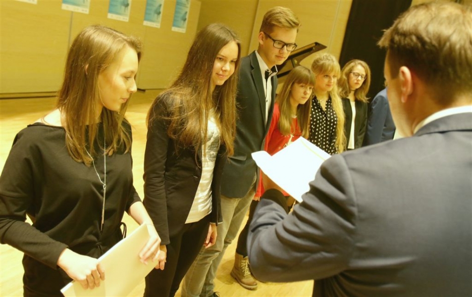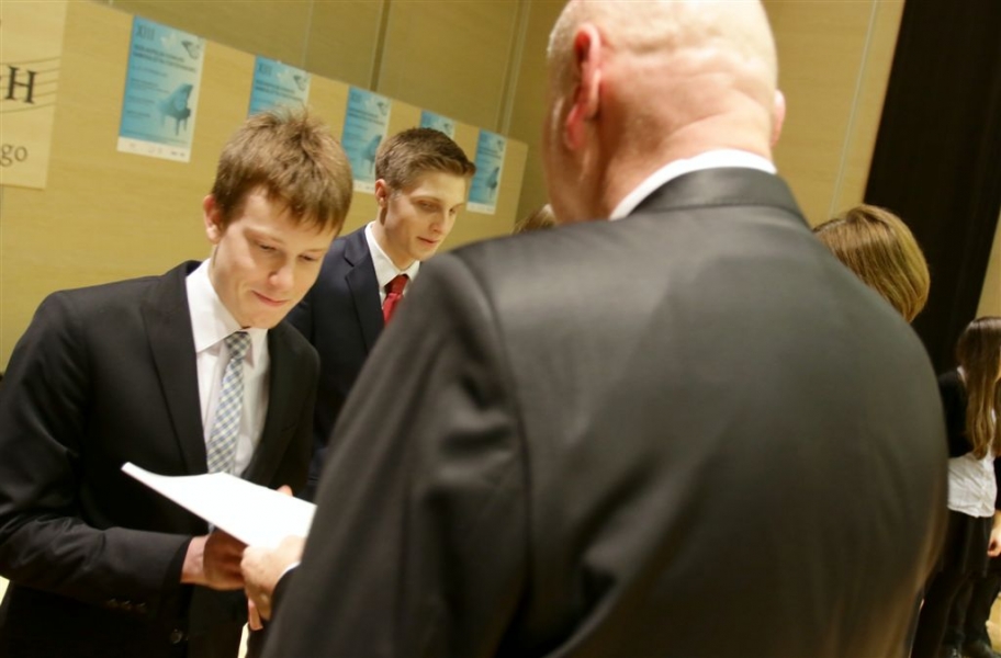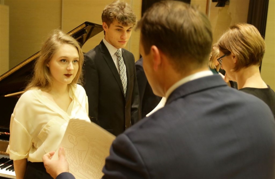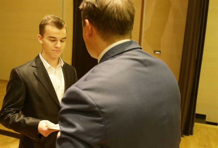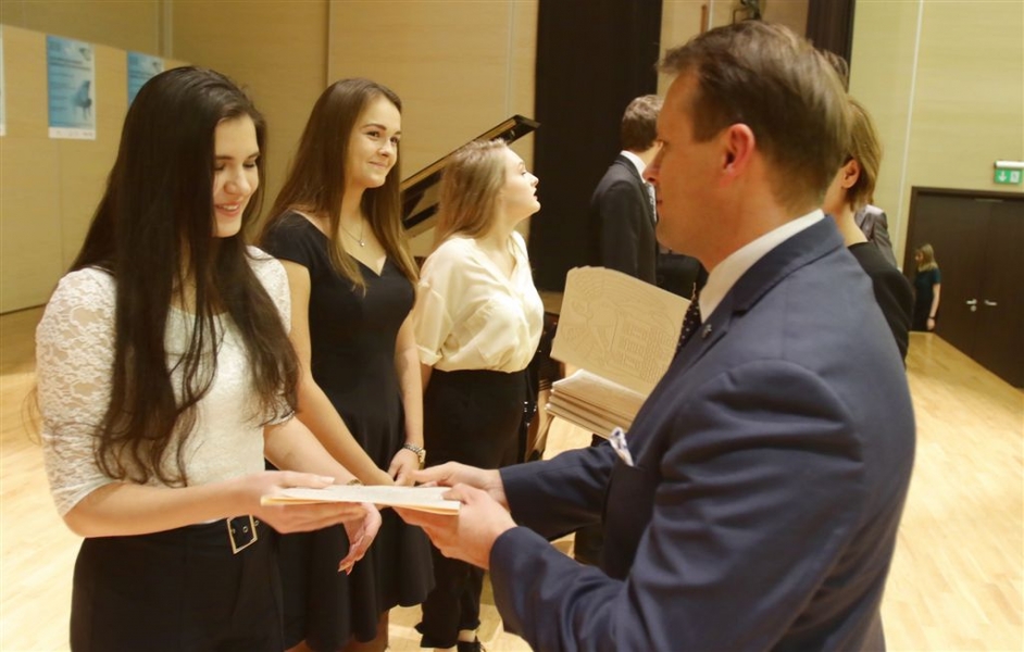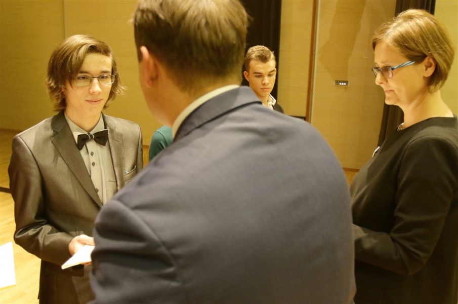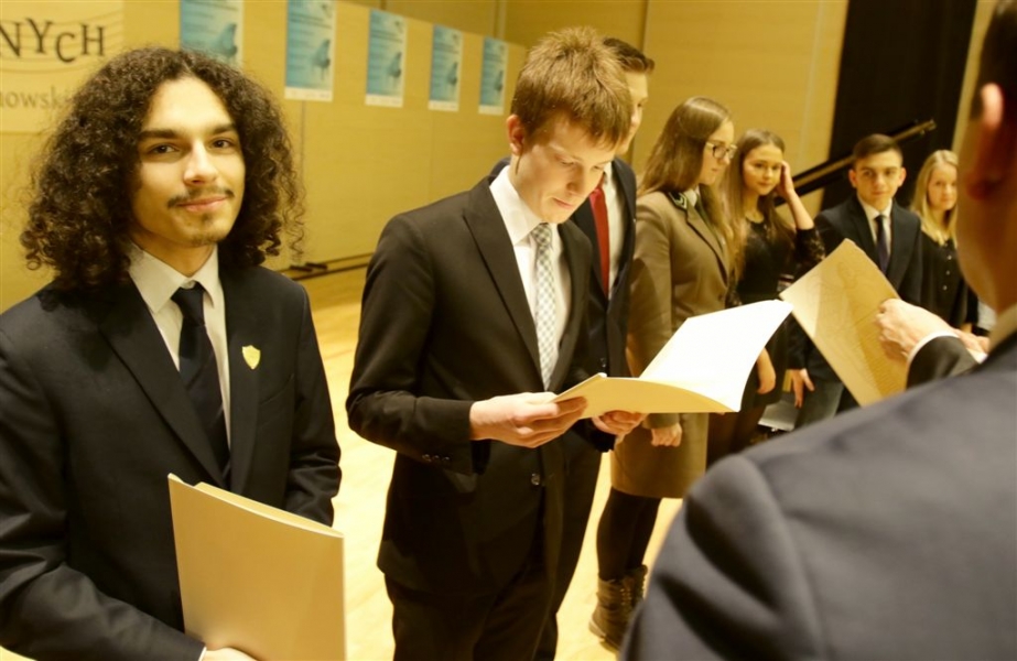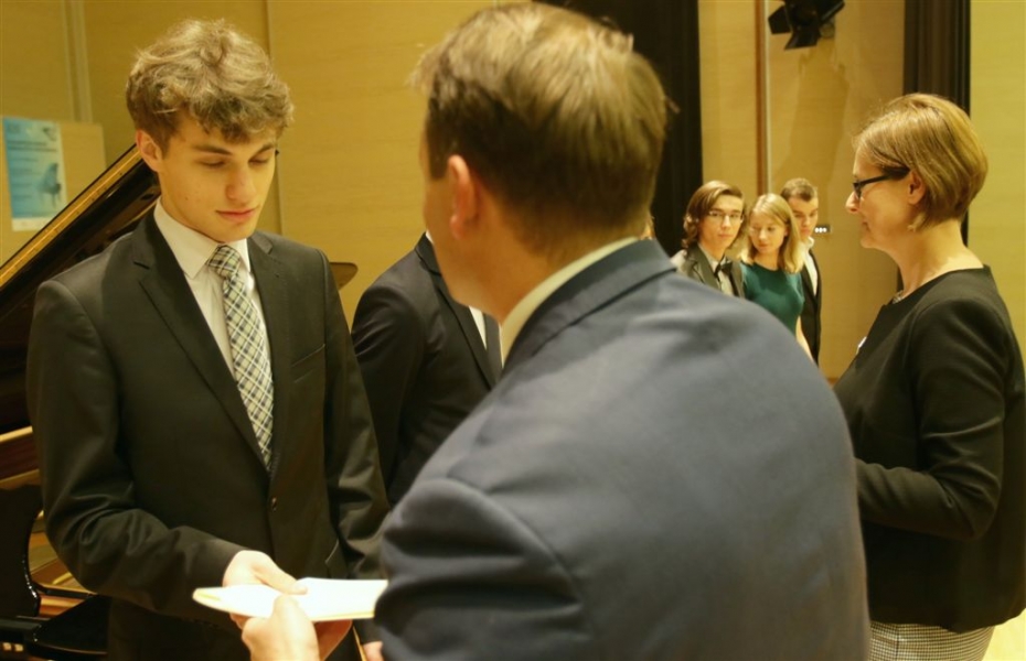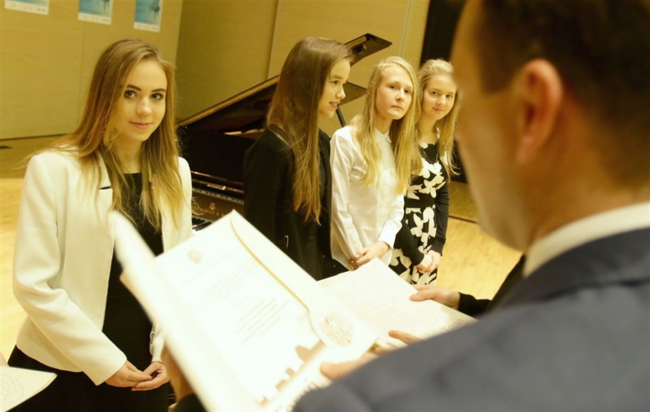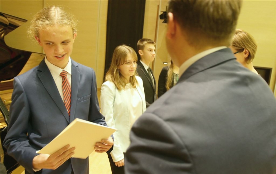 176 uzdolnionych toruńskich uczniów będzie otrzymywać stypendia w roku szkolnym 2016/2017. Wręczenie aktów ich nadania przez prezydenta Torunia Michała Zaleskiego odbyło się 17 listopada 2016 r. w sali koncertowej Zespołu Szkół Muzycznych. Fot. Adam Zakrzewski