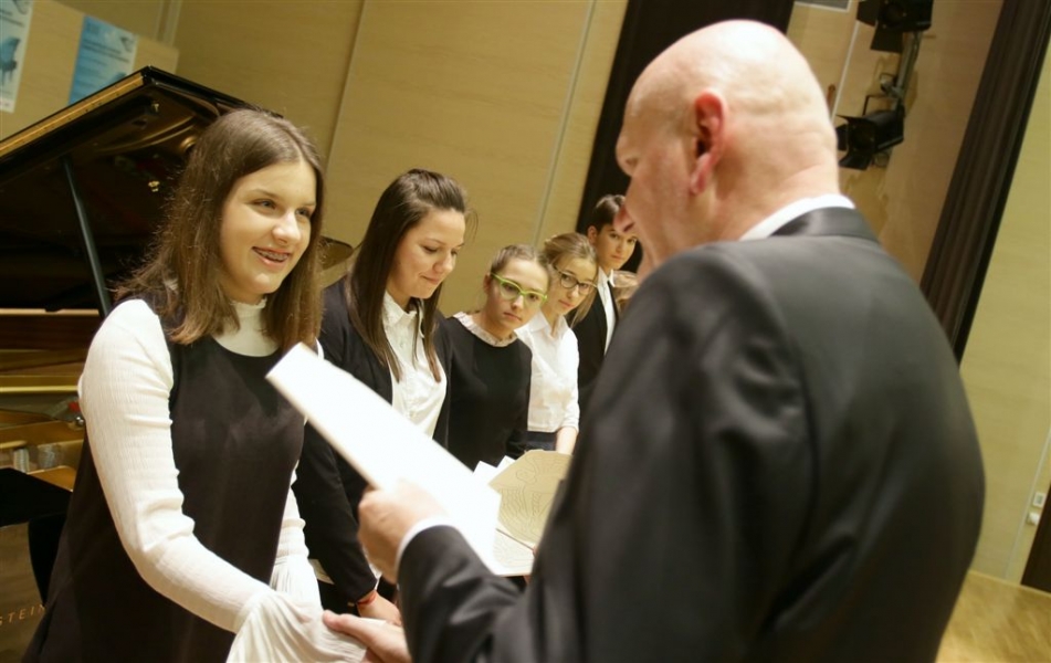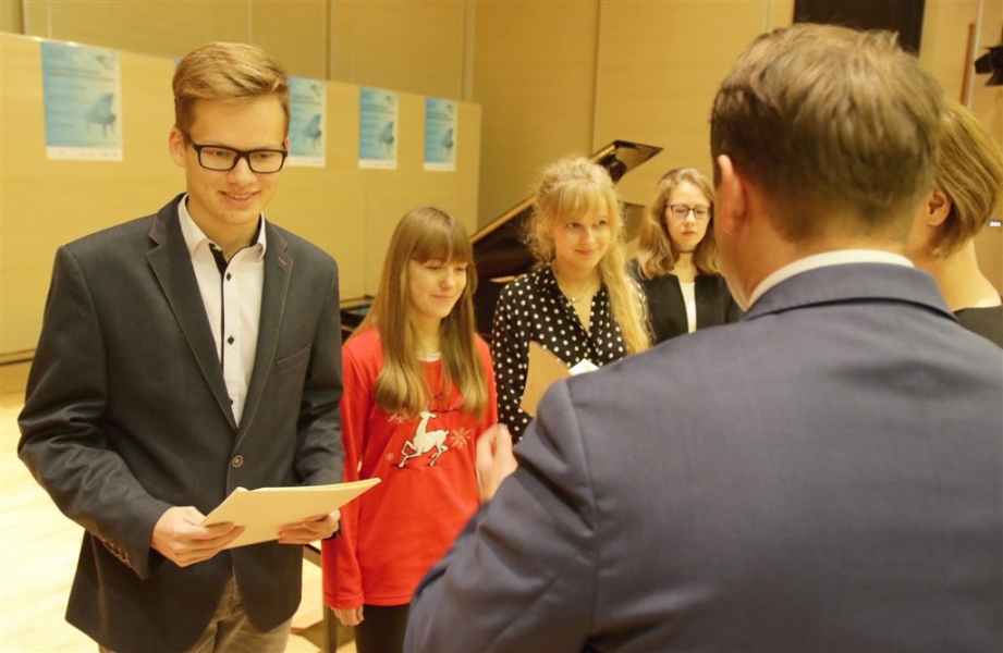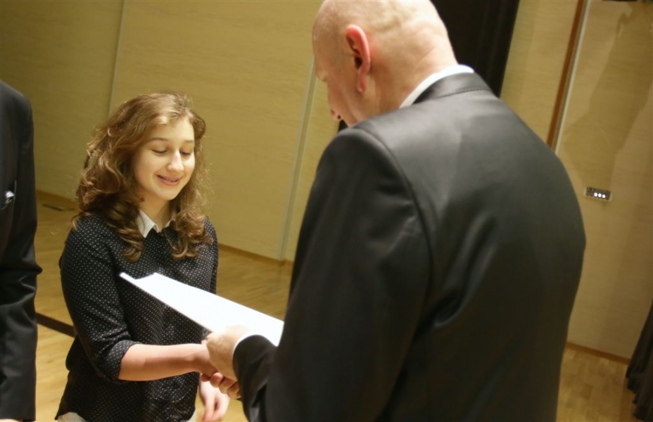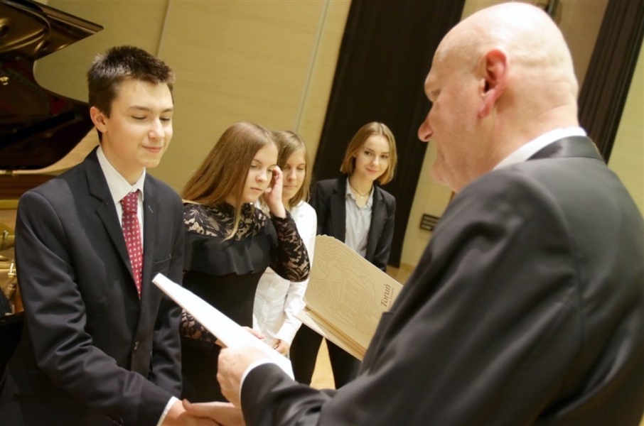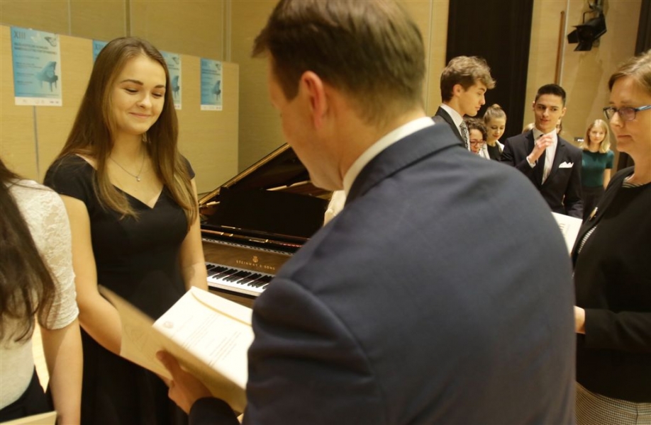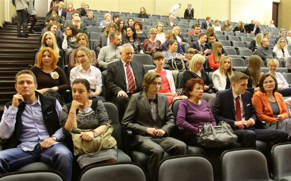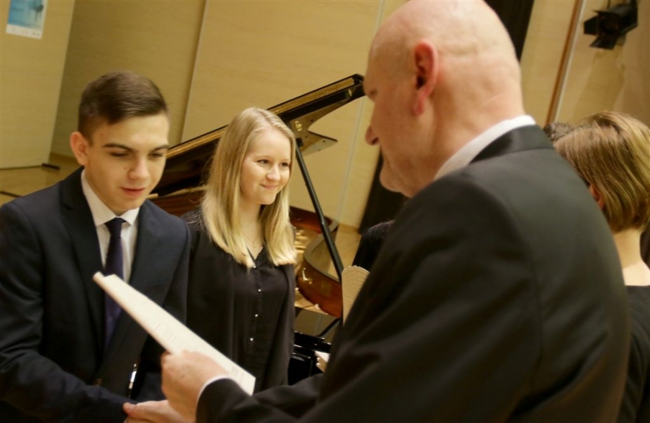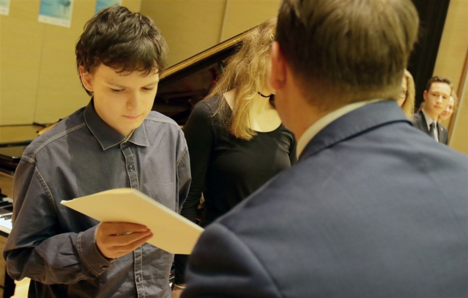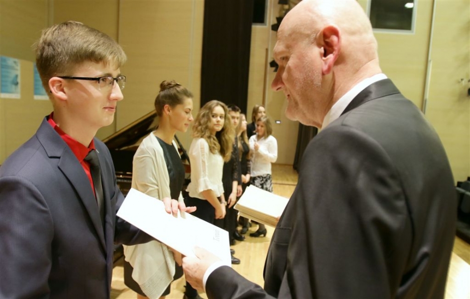 176 uzdolnionych toruńskich uczniów będzie otrzymywać stypendia w roku szkolnym 2016/2017. Wręczenie aktów ich nadania przez prezydenta Torunia Michała Zaleskiego odbyło się 17 listopada 2016 r. w sali koncertowej Zespołu Szkół Muzycznych. Fot. Adam Zakrzewski