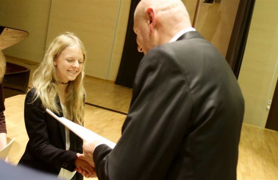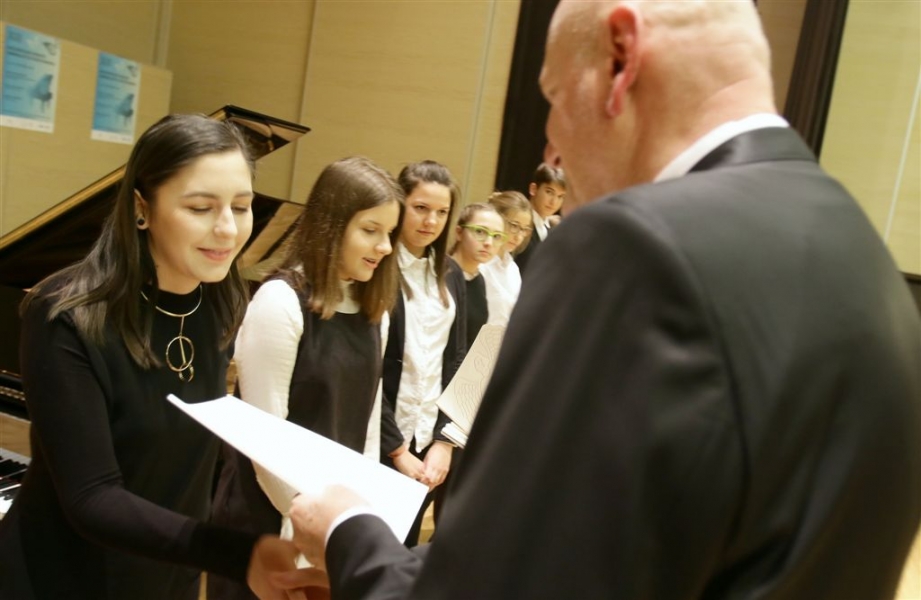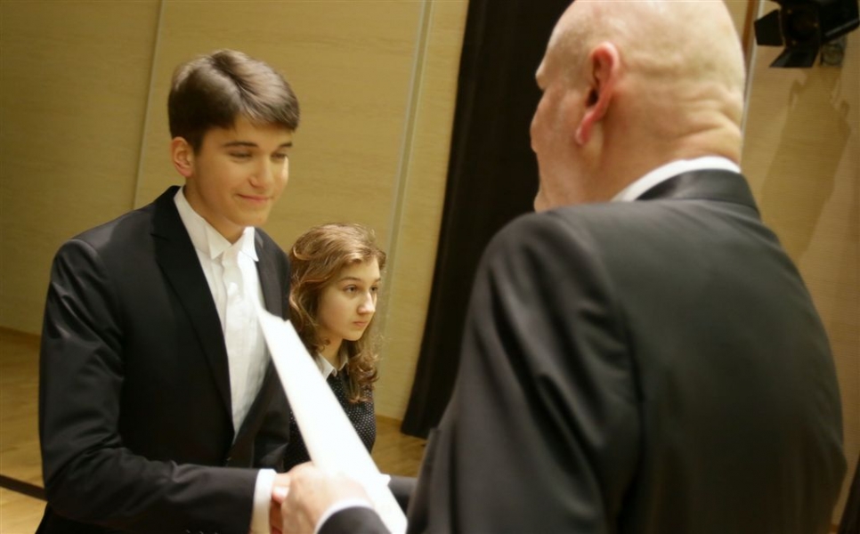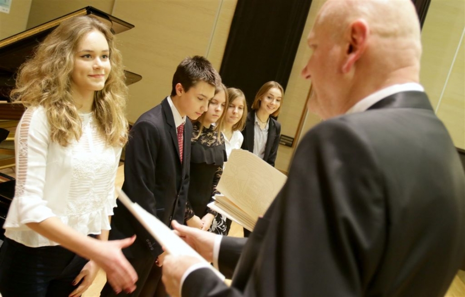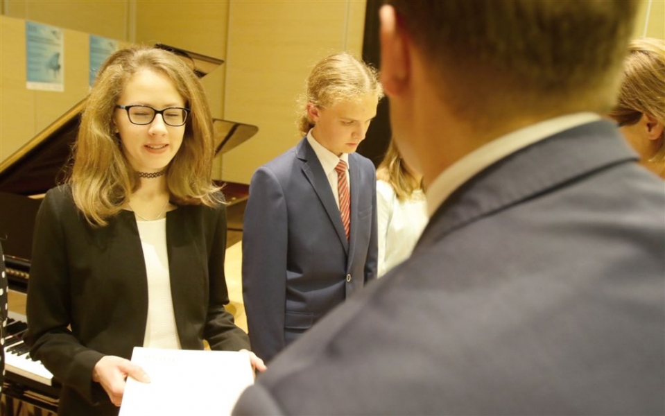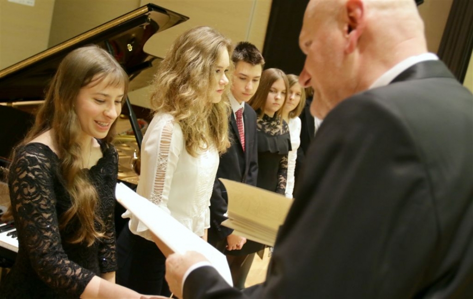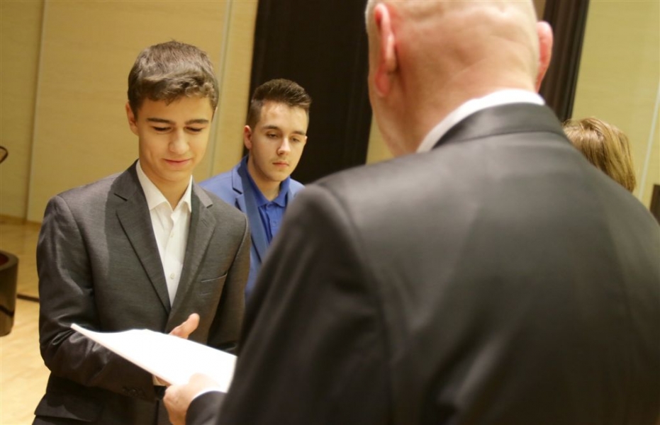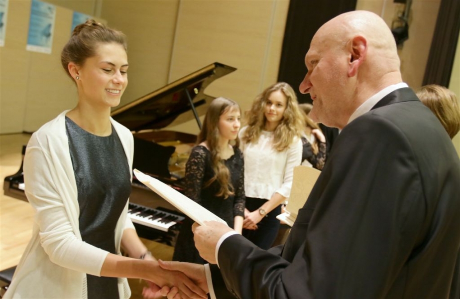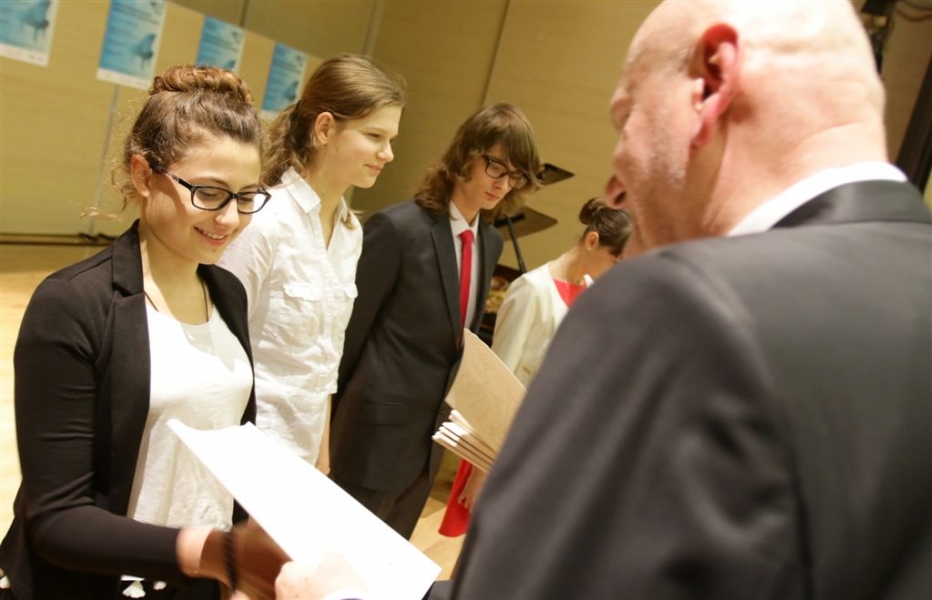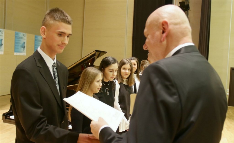 176 uzdolnionych toruńskich uczniów będzie otrzymywać stypendia w roku szkolnym 2016/2017. Wręczenie aktów ich nadania przez prezydenta Torunia Michała Zaleskiego odbyło się 17 listopada 2016 r. w sali koncertowej Zespołu Szkół Muzycznych. Fot. Adam Zakrzewski