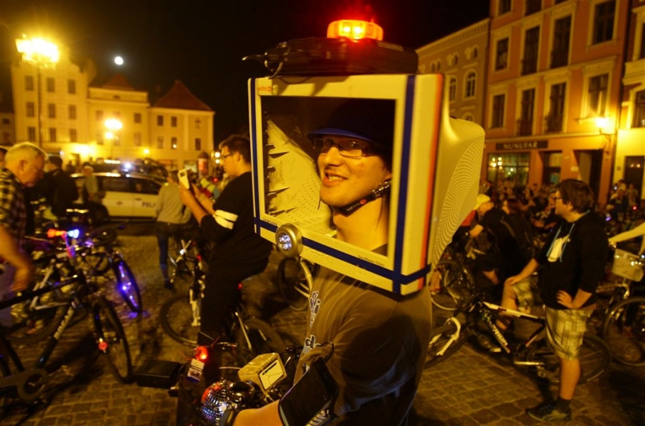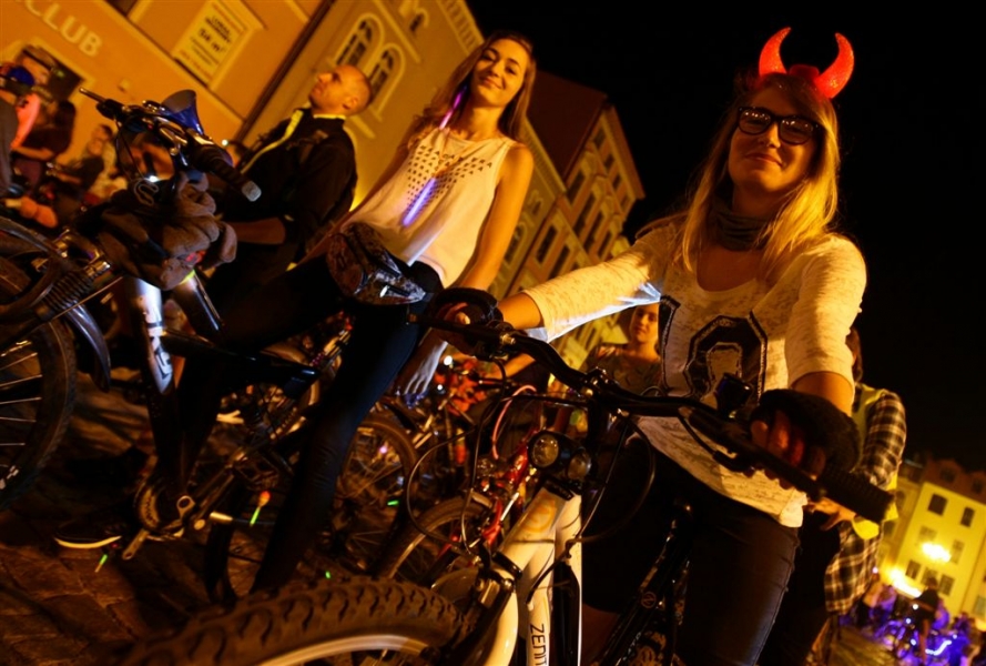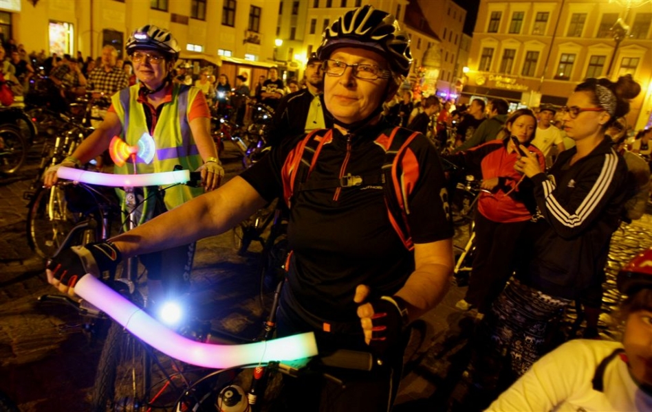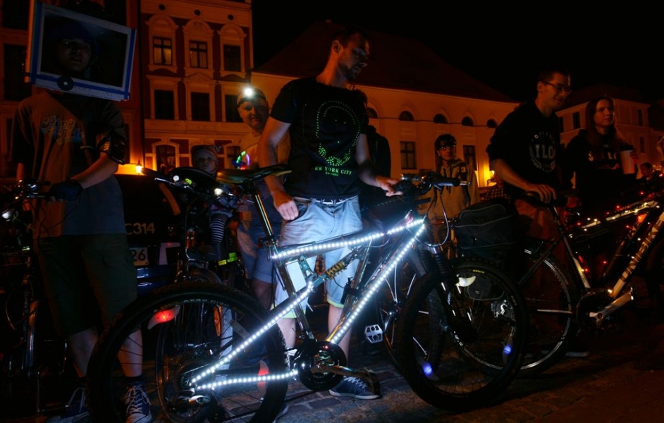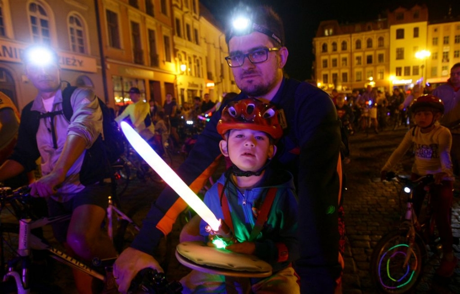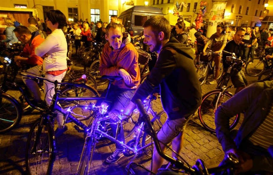 29 sierpnia 2015 r. przez Toruń przejechała rowerowa VI Świetlna Masa Krytyczna. Wydarzenie towarzyszyło tegorocznemu Bella Skyway Festival. Fot. Adam Zakrzewski
